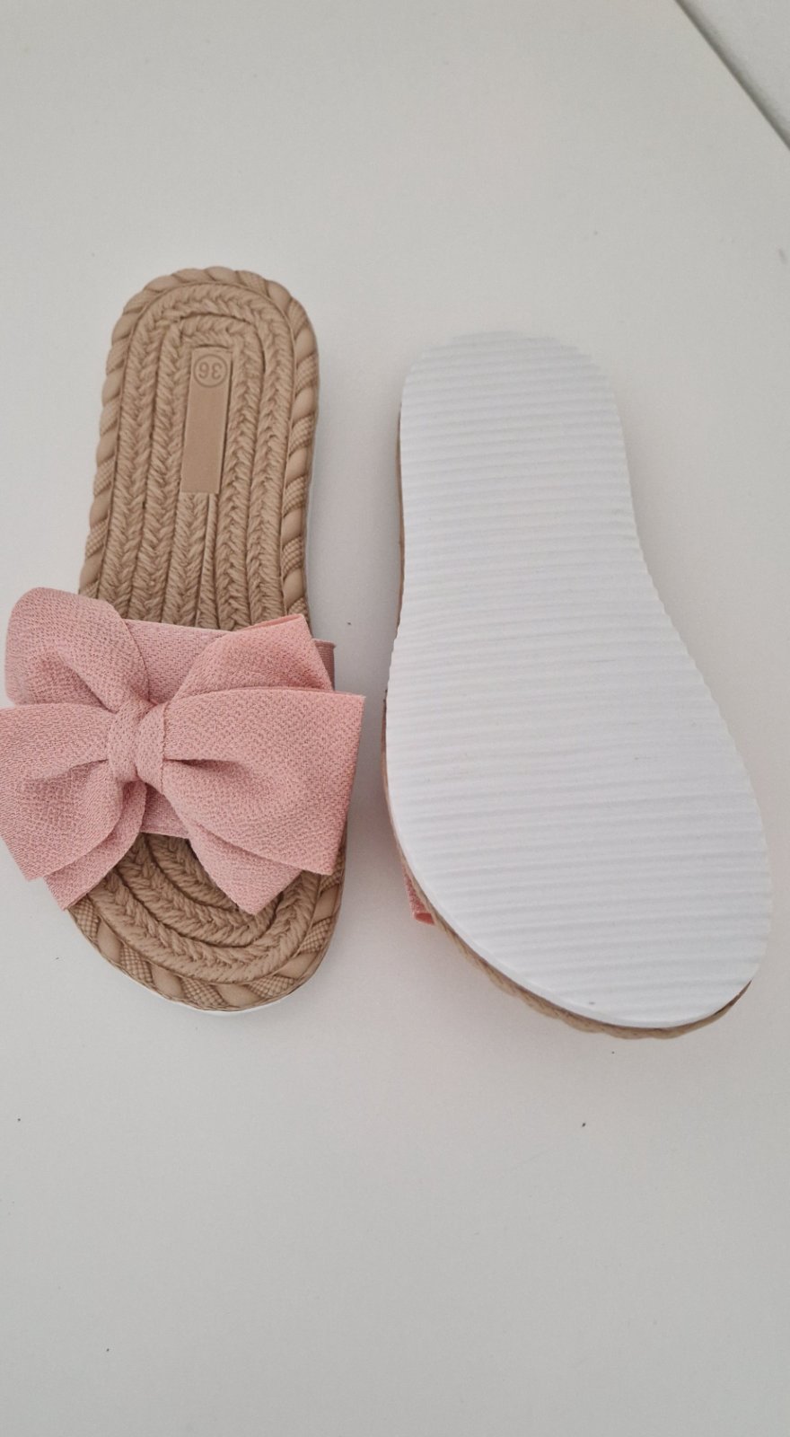 Krasne nove dámske šľapky s mašľou. Veľkosť 36 .