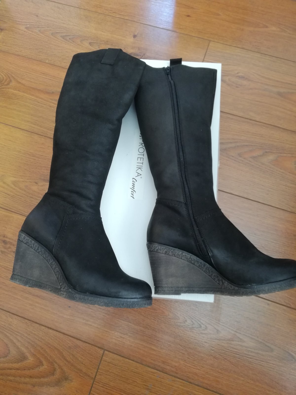 Zimne, teple cizmy, celokozene, vnutro je z ovcej vlny, jemnuckej, nie su vhodne na hrube lytka, vhodne na chodlo normalne aj sirsie. Klinovy opatok. Dovod predaja, padla mi klenba a potrebujem vacsie cislo. Nemala som ich viac ako 2x na nohe.
