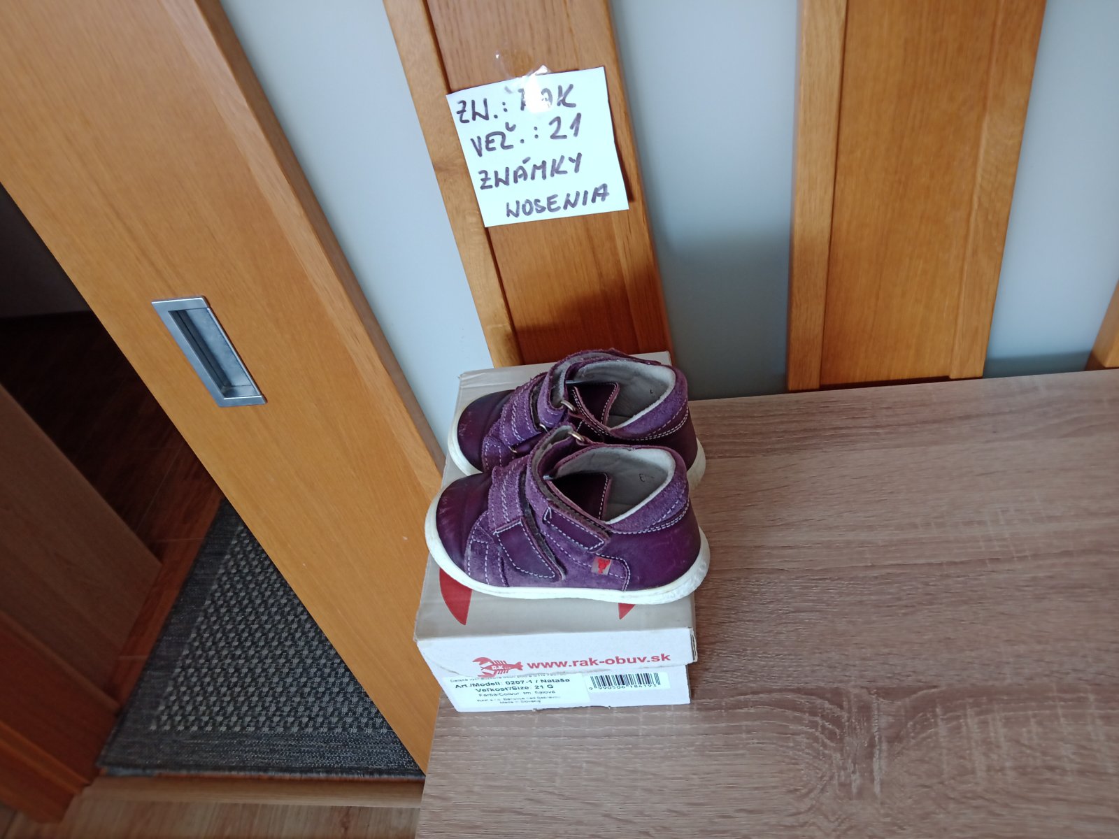 Predám dievčenské prechodné topánky zn.Rak veľ.21,so známkami noseni(škrabance),nak su ešte dobre.Este poslúžia.Je to zohľadnené v cene.Cena je 5eur.