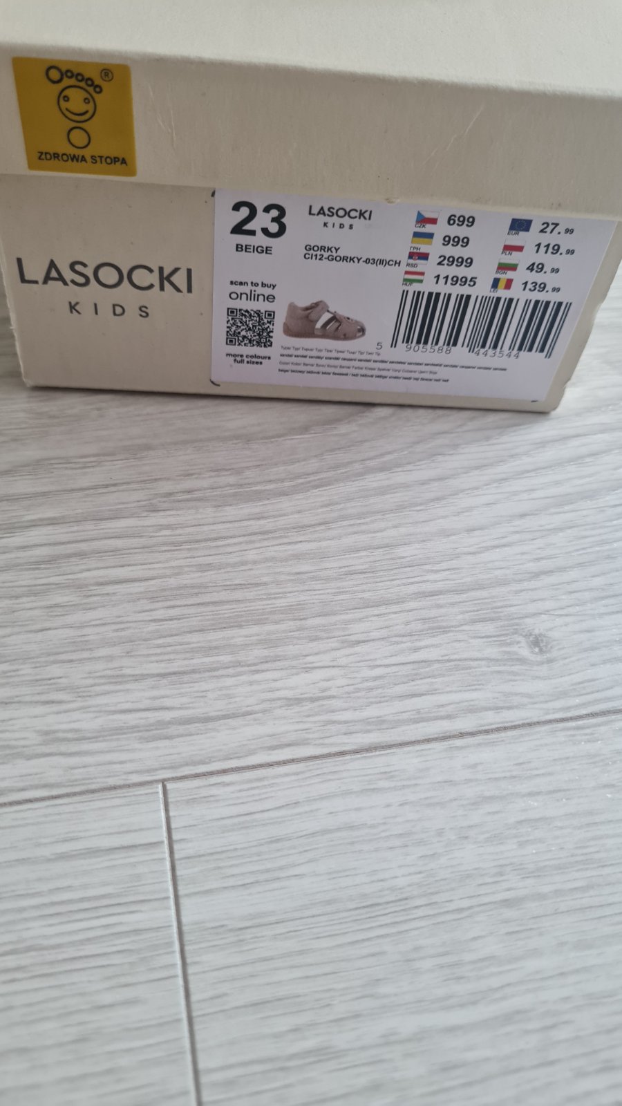 Sandálky Lasocki ,,Gorky,, veľkosť 23 - vnút.dlžka 15,1cm -kožené farba je skôr hnedofialová hrúbka podrážky 1,5cm okrúhla špička bežné známky nosenia, nemajú žiadne poškodenia len sú trošku špina...