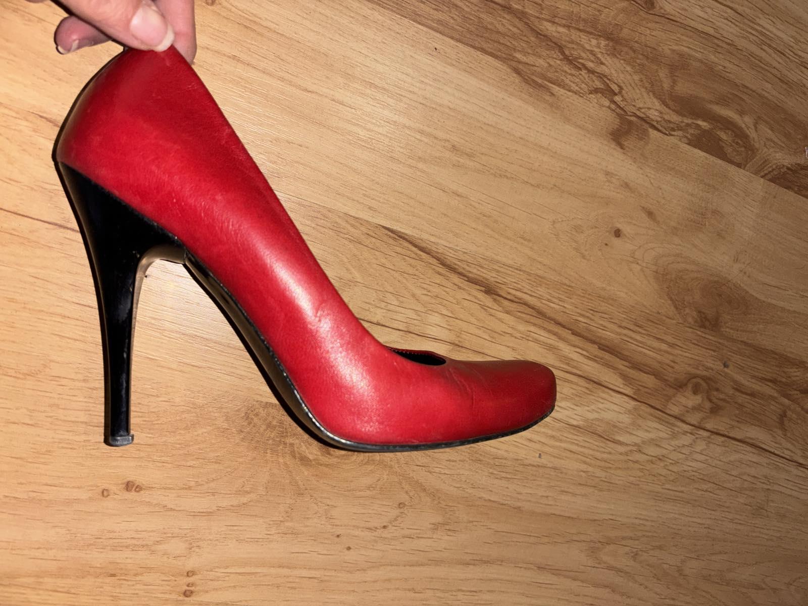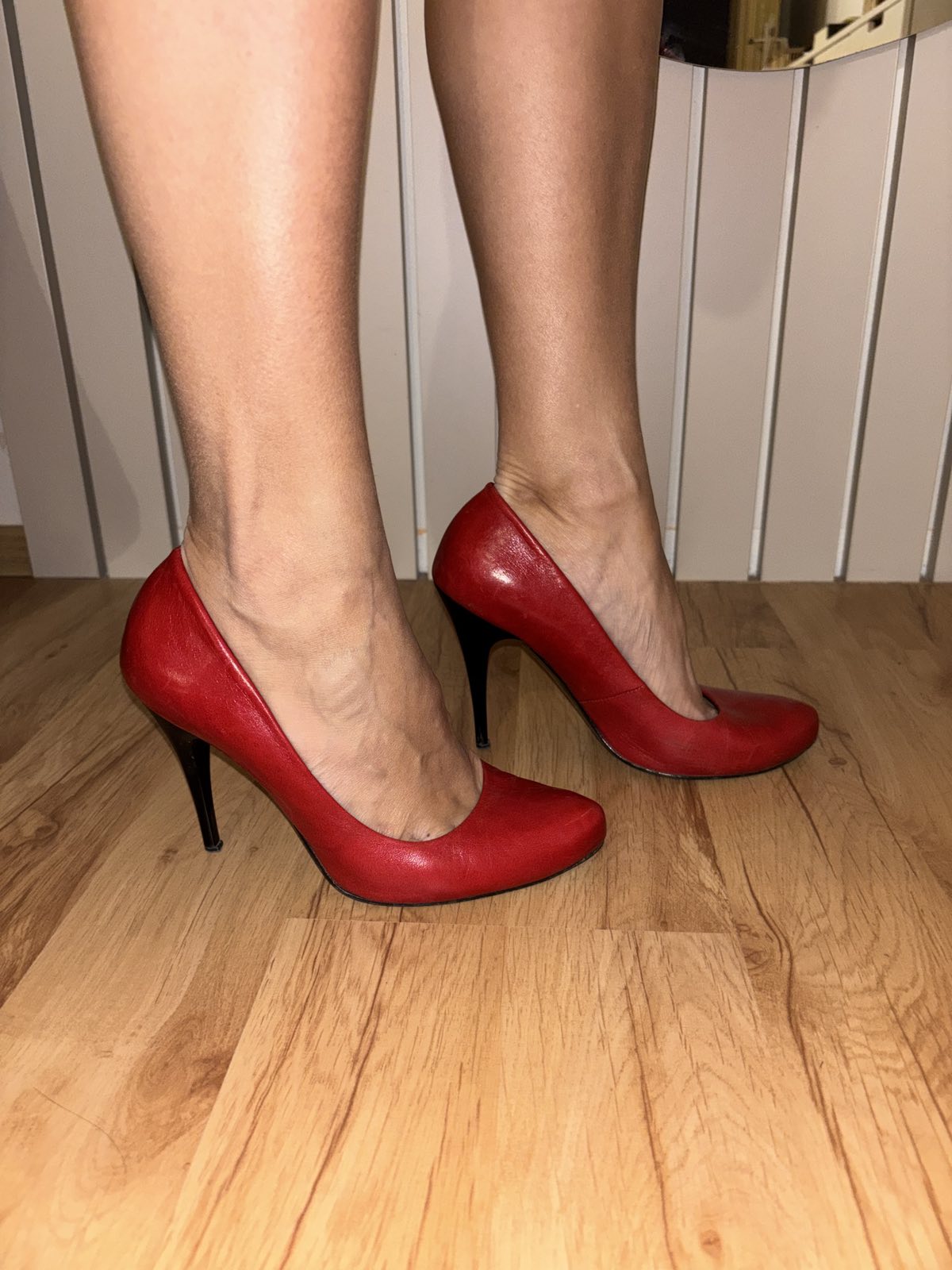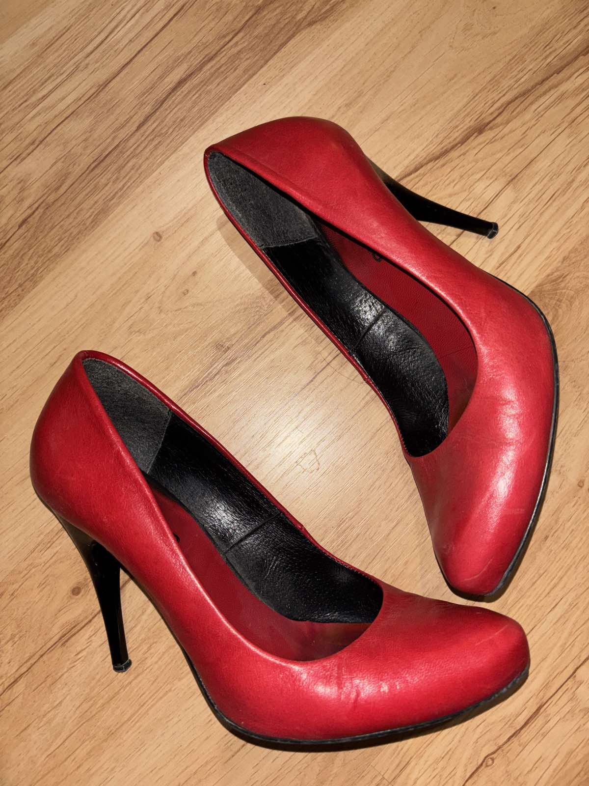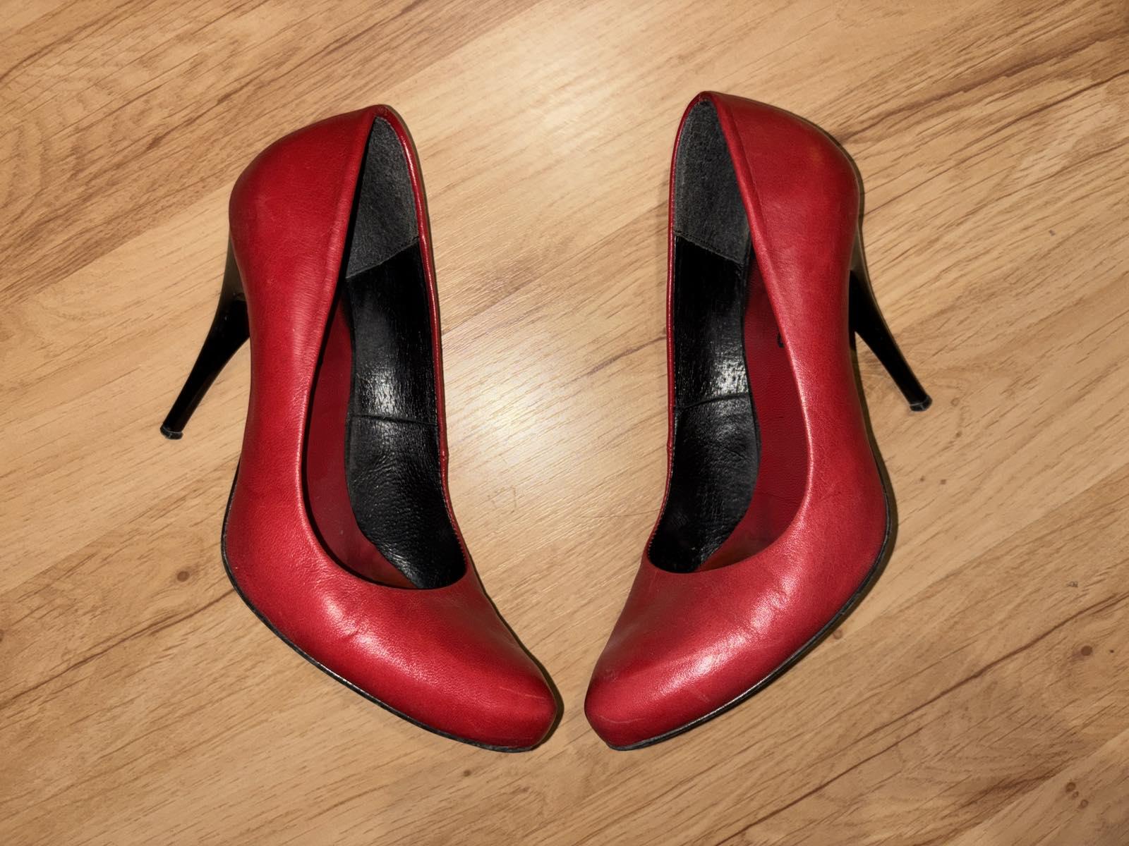 Výborný stav, kožené, červené, čierny opätok, veľkosť 37
