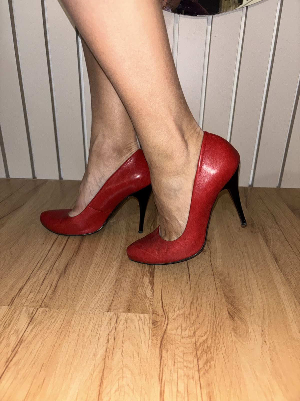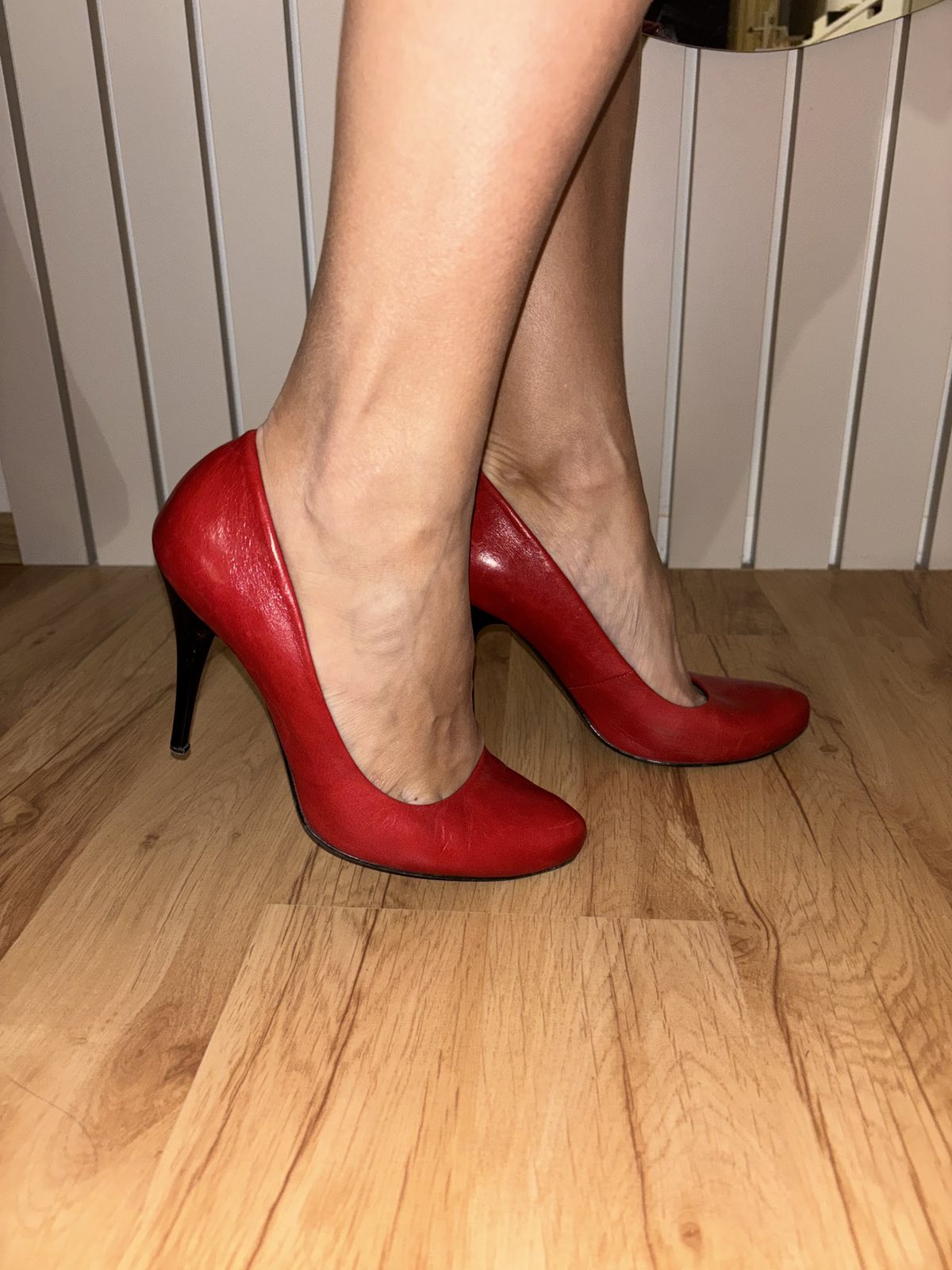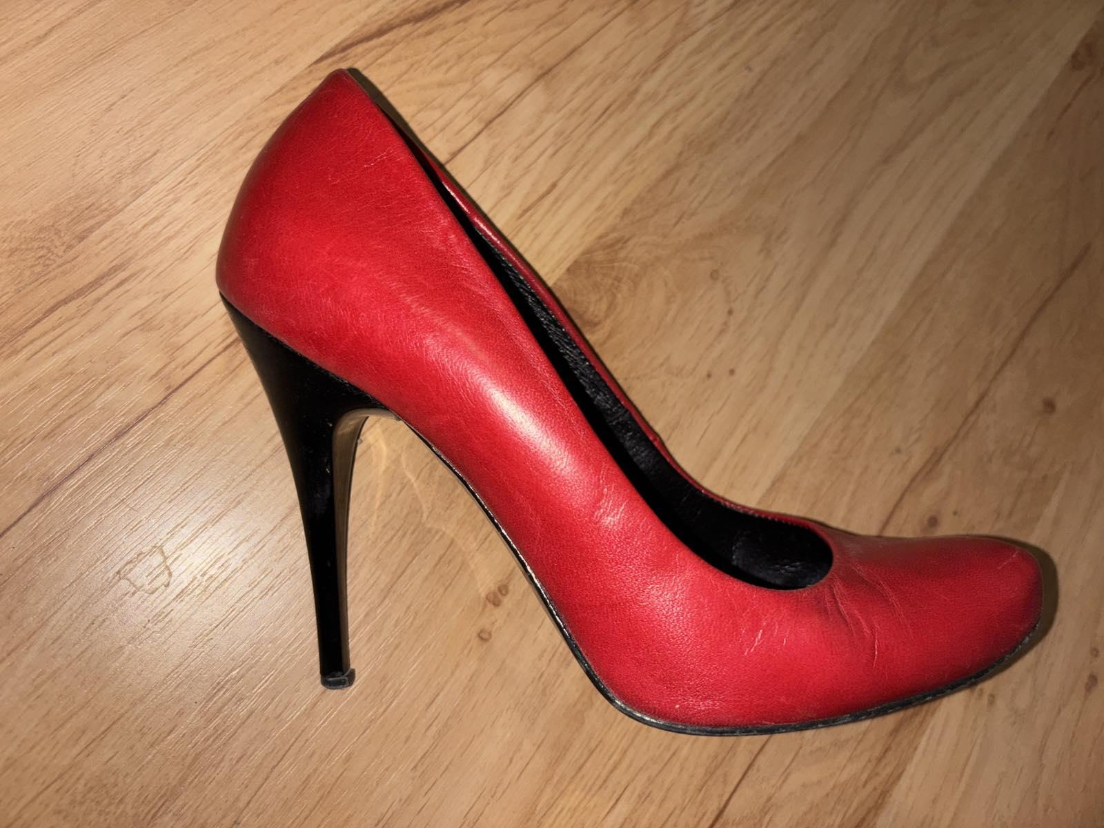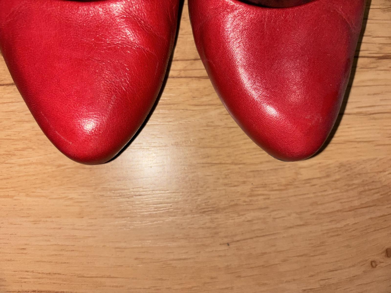 Výborný stav, kožené, červené, čierny opätok, veľkosť 37