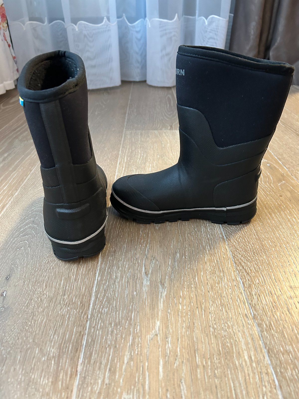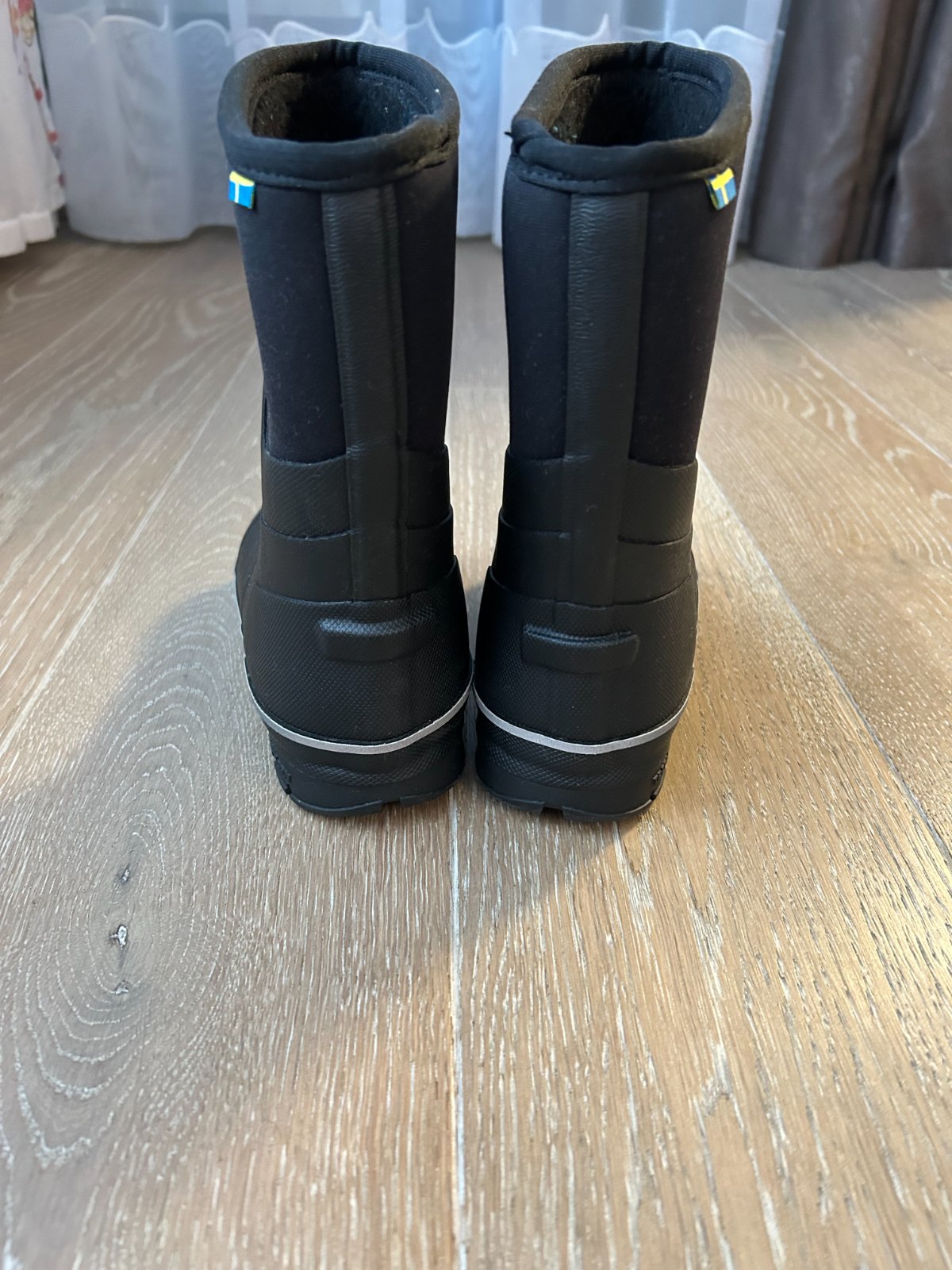 Veľmi zachovalé čižmy zn. Tretorn vybavené pohodlnou a vodeodolnou neoprénovou podšívkou, ako aj mäkkou fleecovou podšívkou, ktorá poskytuje extra teplo v chladných dňoch. Reflexné detaily a zosilnená päta a špičky zvyšujú viditeľnosť a odolnosť.