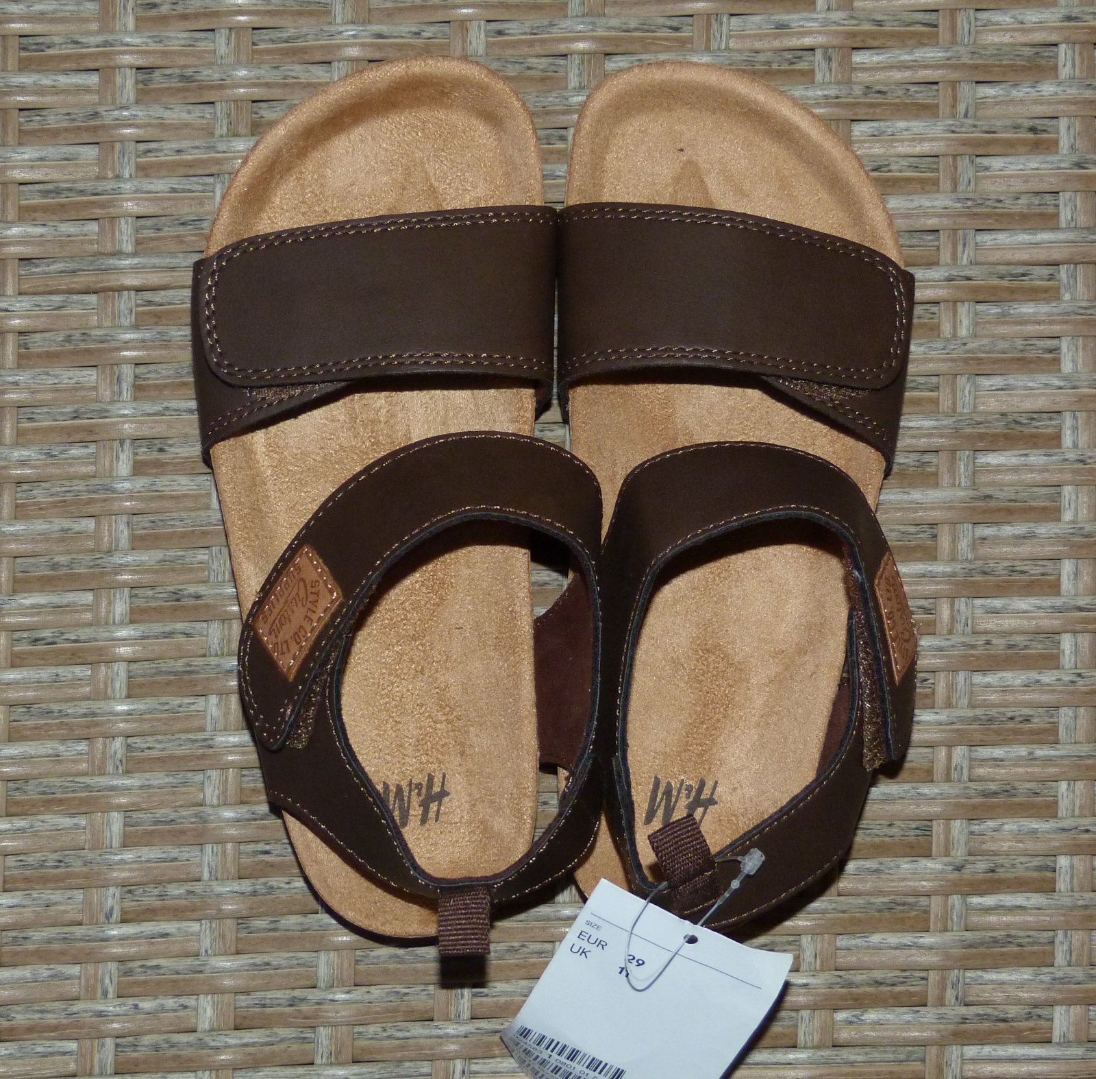 Korkové sandále H&M, nové s visačkou, pohodlné sandále s mäkkou podrážkou z korku, je ohybná, farba kože tmavohnedá ako na foto