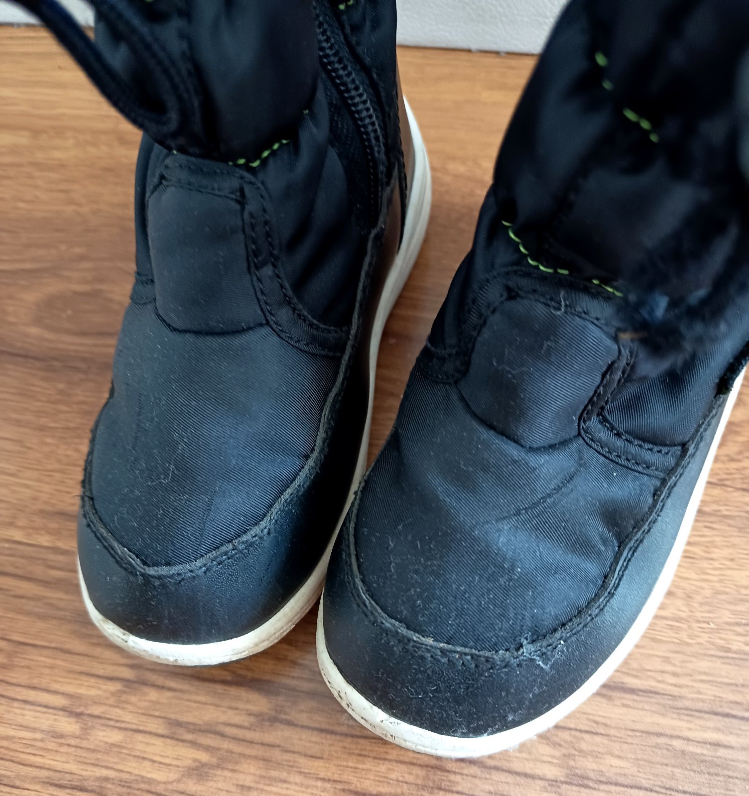 Zimne cizmy plae, v dobrom nosenom stave. Suche zipsy drzia , predna cast podrazky sa zacala odlepovat ale to sa da u obuvnika lahko vyriesit, nepretekali. Alternativa k barefoot skor na uzsiu nohu...