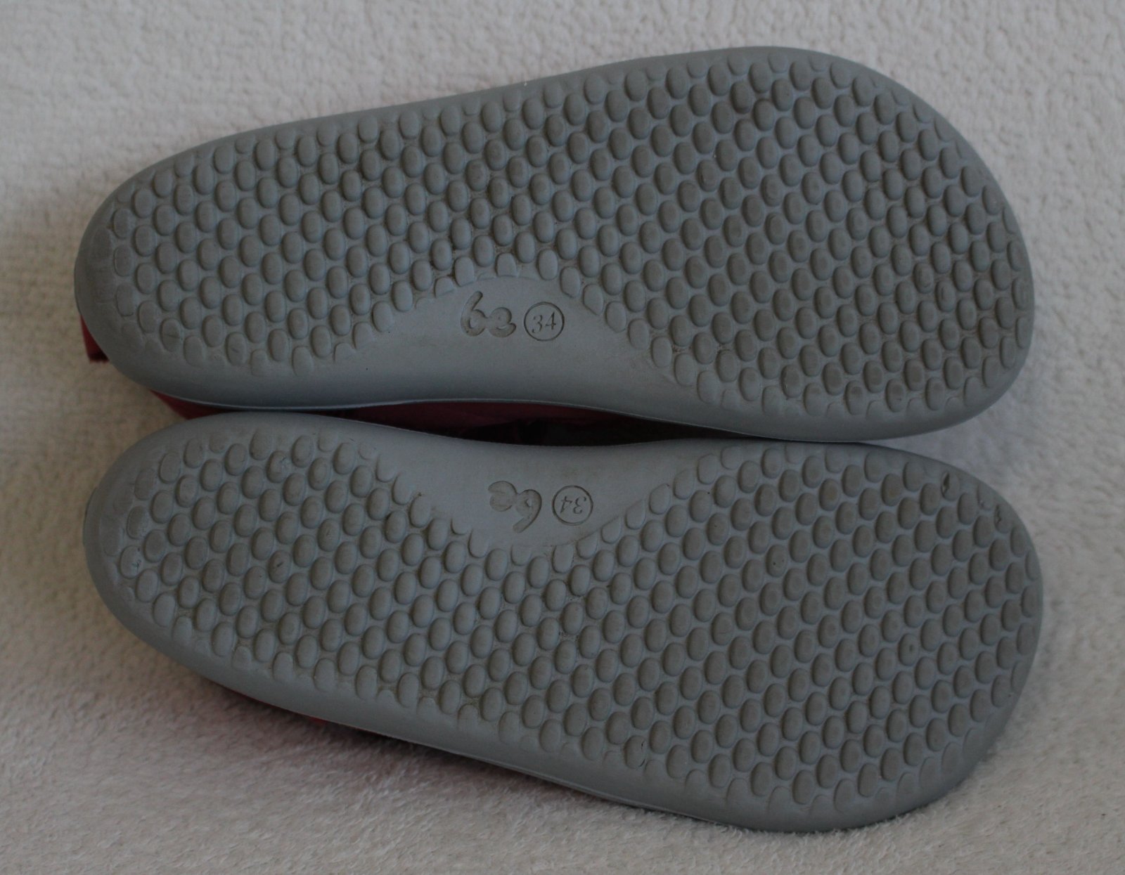 Prechodné barefoot topánky Be Lenka veľkosť 34. Nami nameraná vnútorná dĺžka 218 mm. Nosené 1 dieťaťom 1 sezónu. Veľmi zachovalé bez poškodení.
