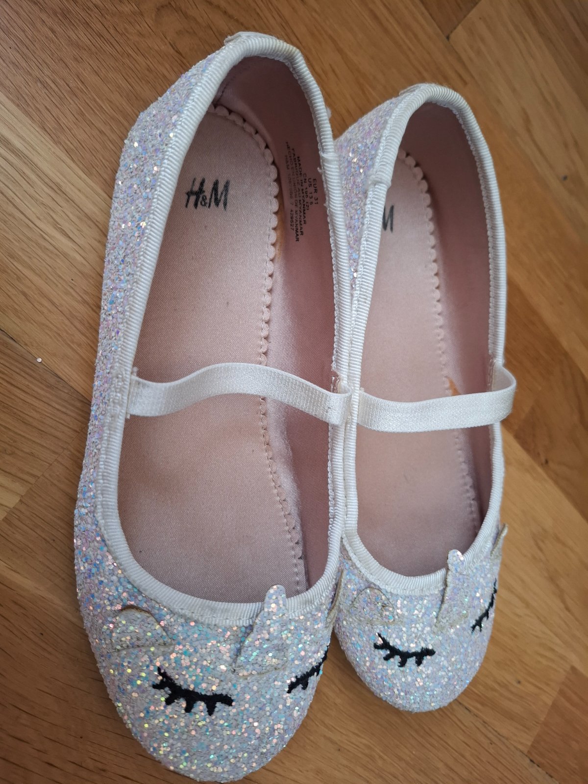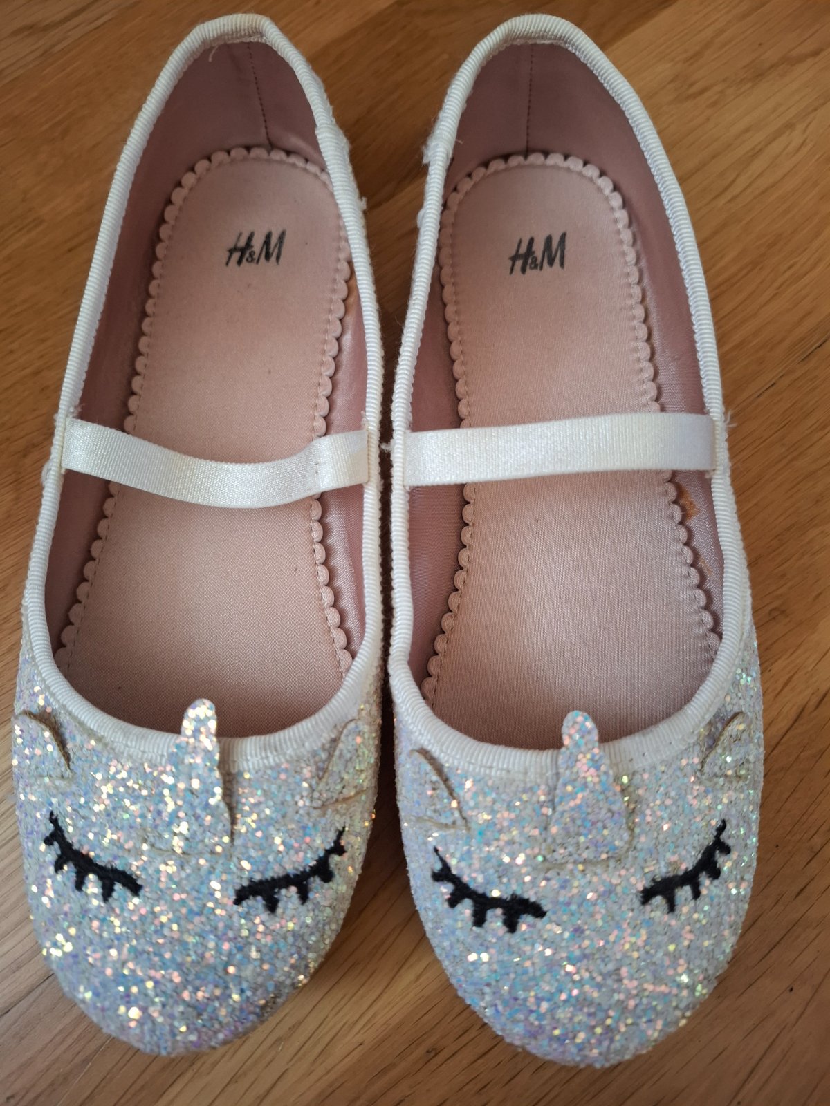 Nosené v dobrom stave vnútorná dĺžka 18,5 cm Vďaka gumickovej klenbe dobre držia na nôžke a zároveň sú pohodlné Trblietave