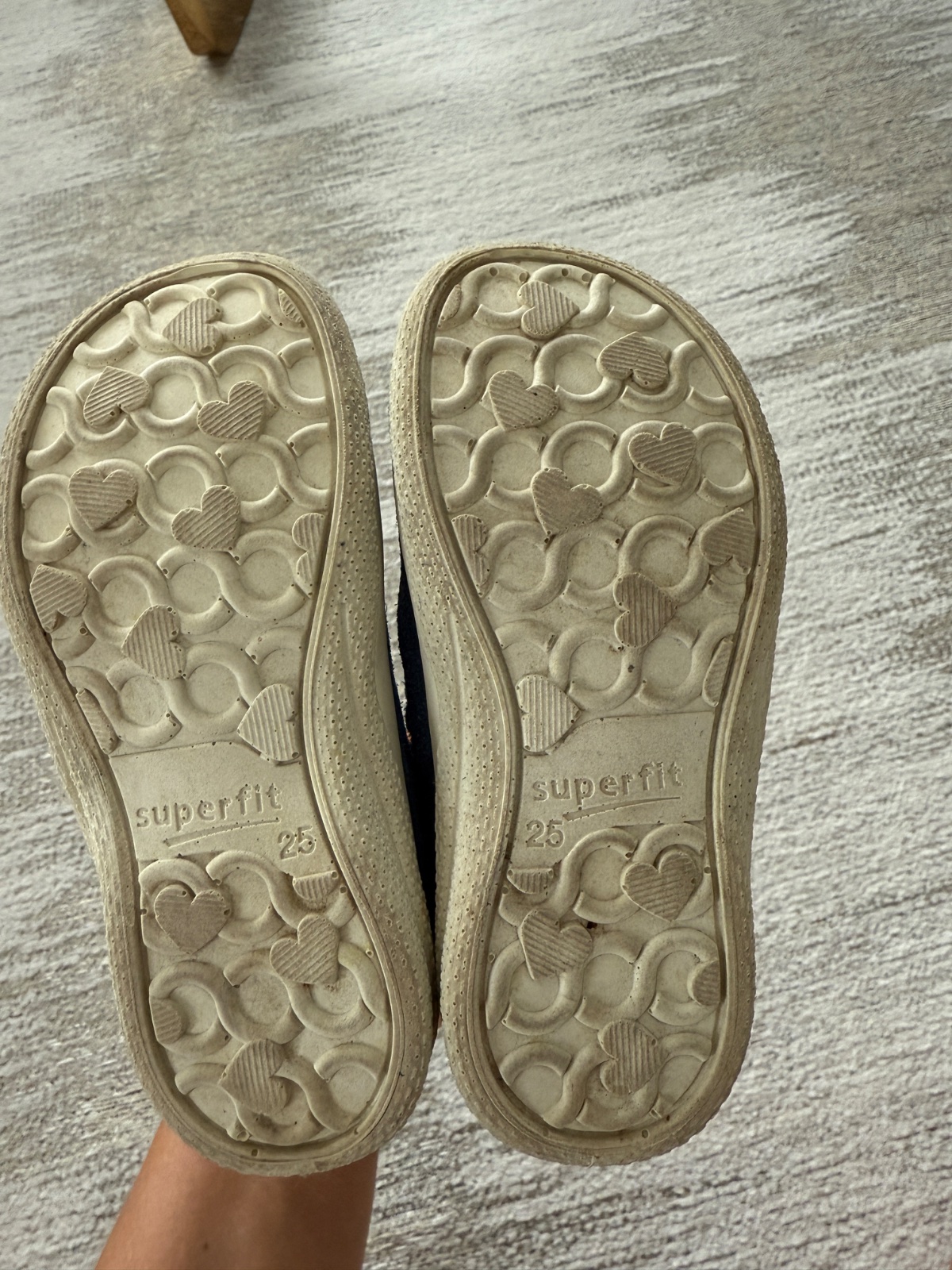 Sandálky sú nenosené, boli len vyskúšané, zabudli sme na ne v skrini, preto je podrážka zažltnutá (viď fotky), inak sú bez poškodení. Vnútorná dĺžka je 15,6cm.