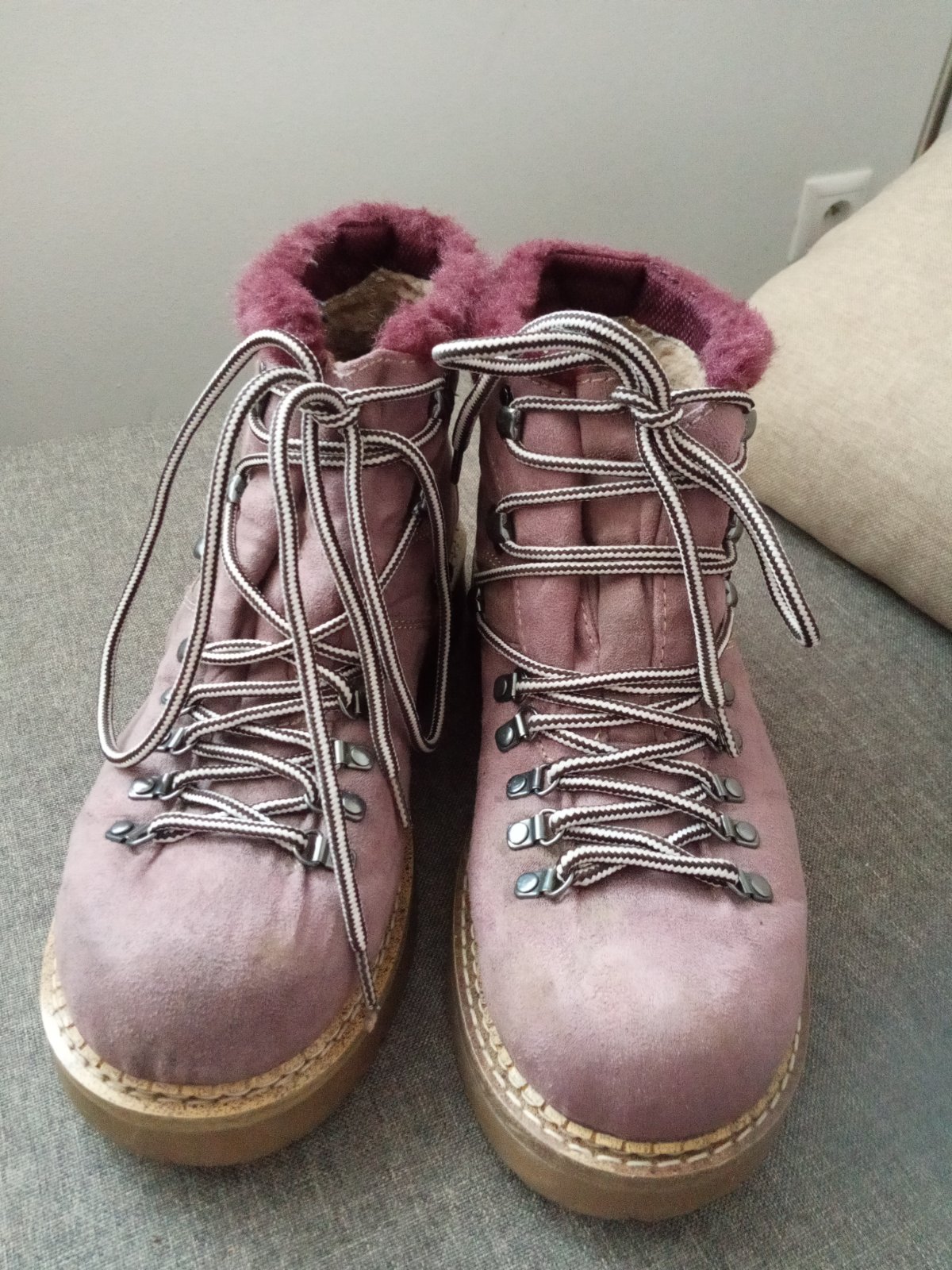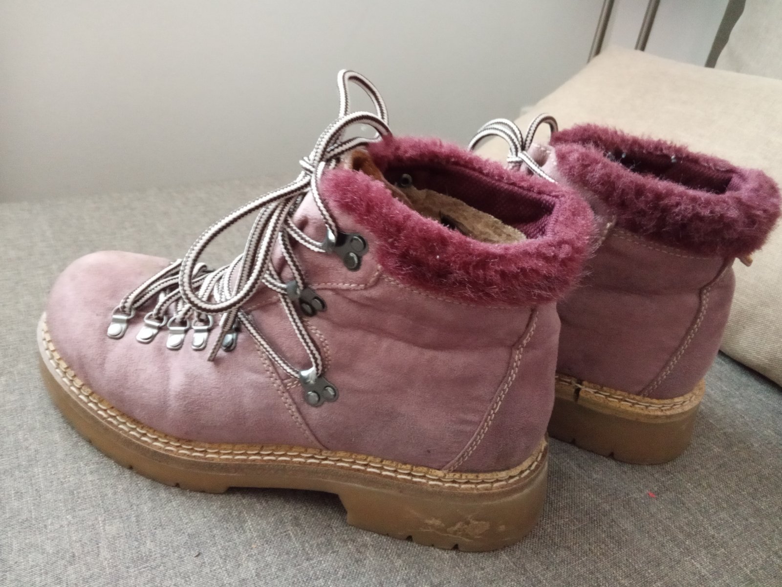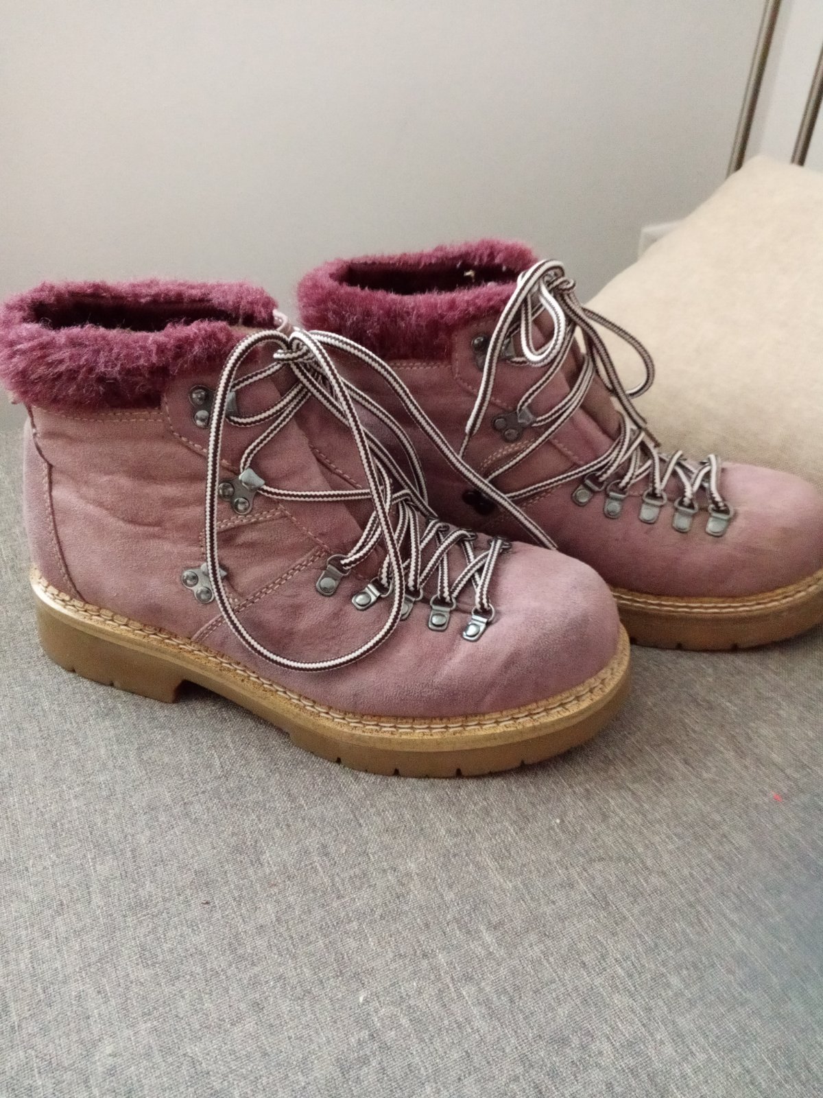Predám dievčenské zimné topánky na šnurovanie, zateplené, staroružovej farby, veľkosť 39, v zachovalom stave, trochu odraté vpredu, viď foto.