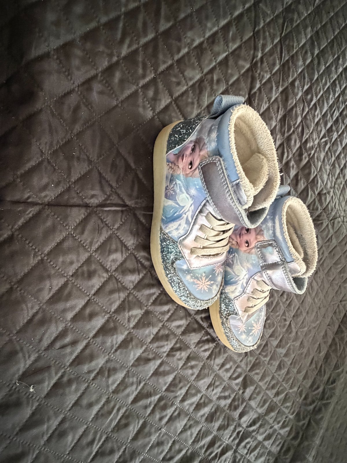 Krasne Frozen Elsa topanky, blikaju, su zvnutra zateplene, takze posluzia aj na suchu zimu. Nezatekaju, ligocu sa, pekny noseny stav.