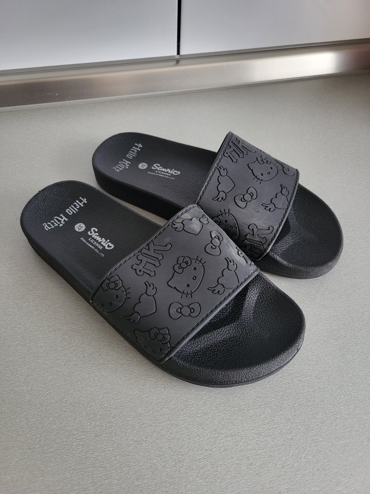 redakcia pekne cierne šľapky v dobrom stave s motívom hello kitty. Dcéra ich nosila len ako papuce po dole. Vnútorná dĺžka vid foto.