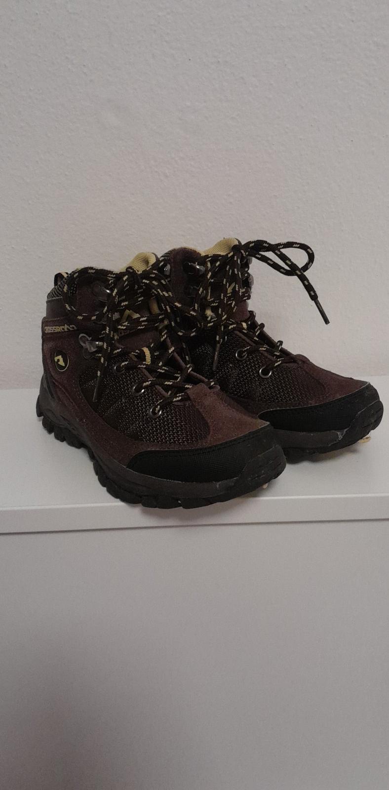 Turisticke topanky kotnikove. Zapinanie na suchy zips. Nosili sme aj v zime s termo vlozkou