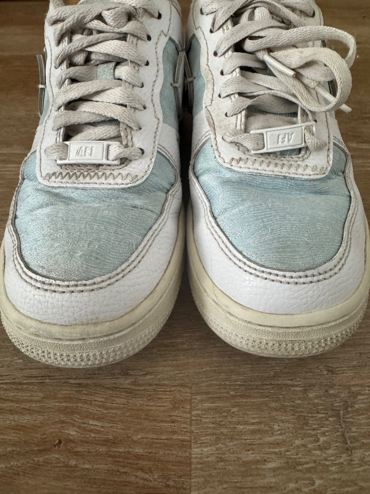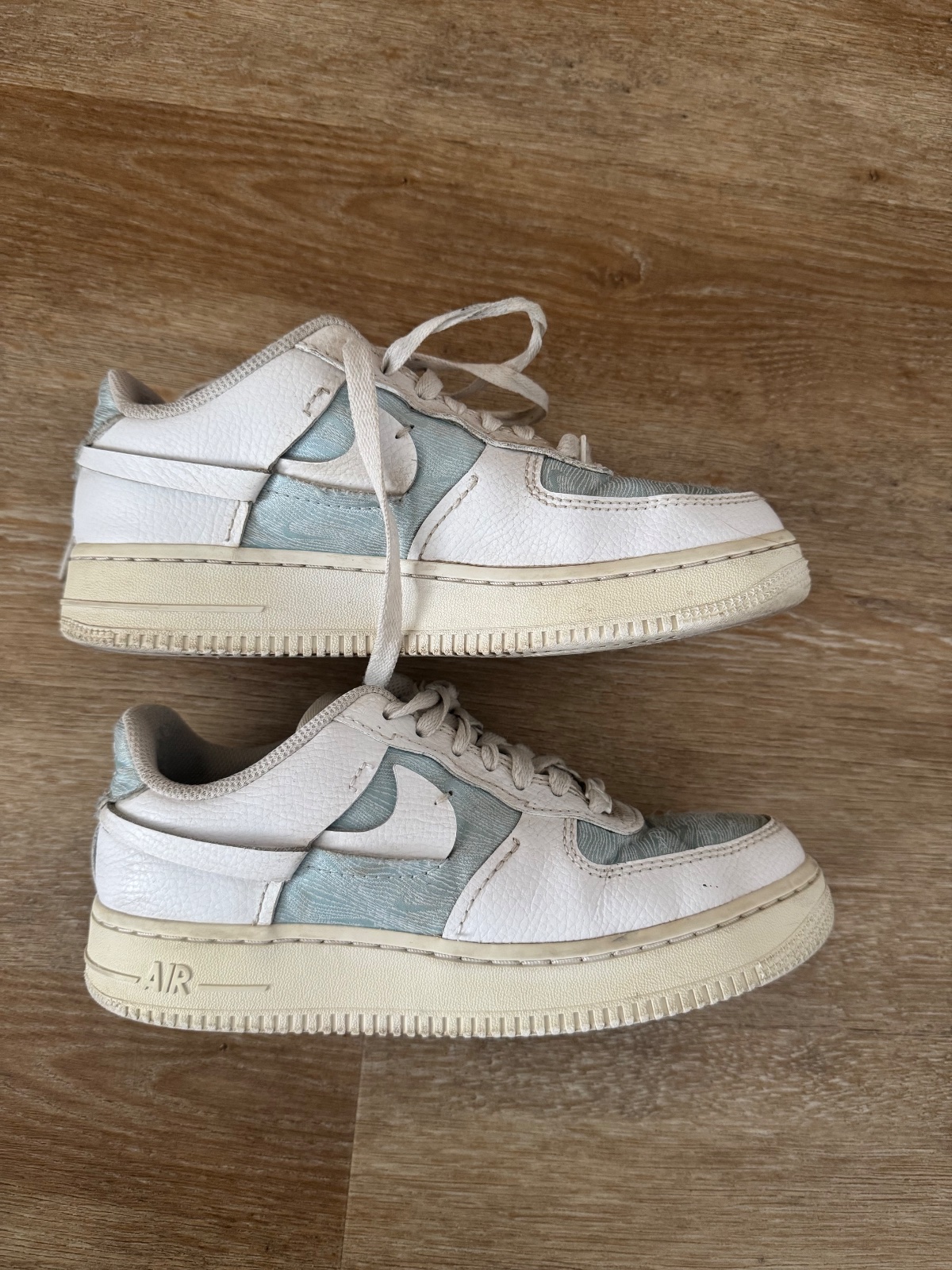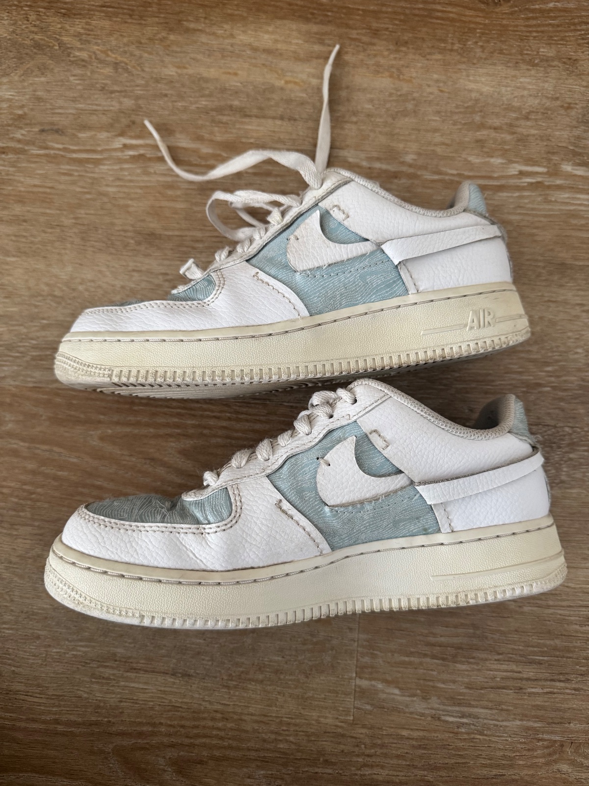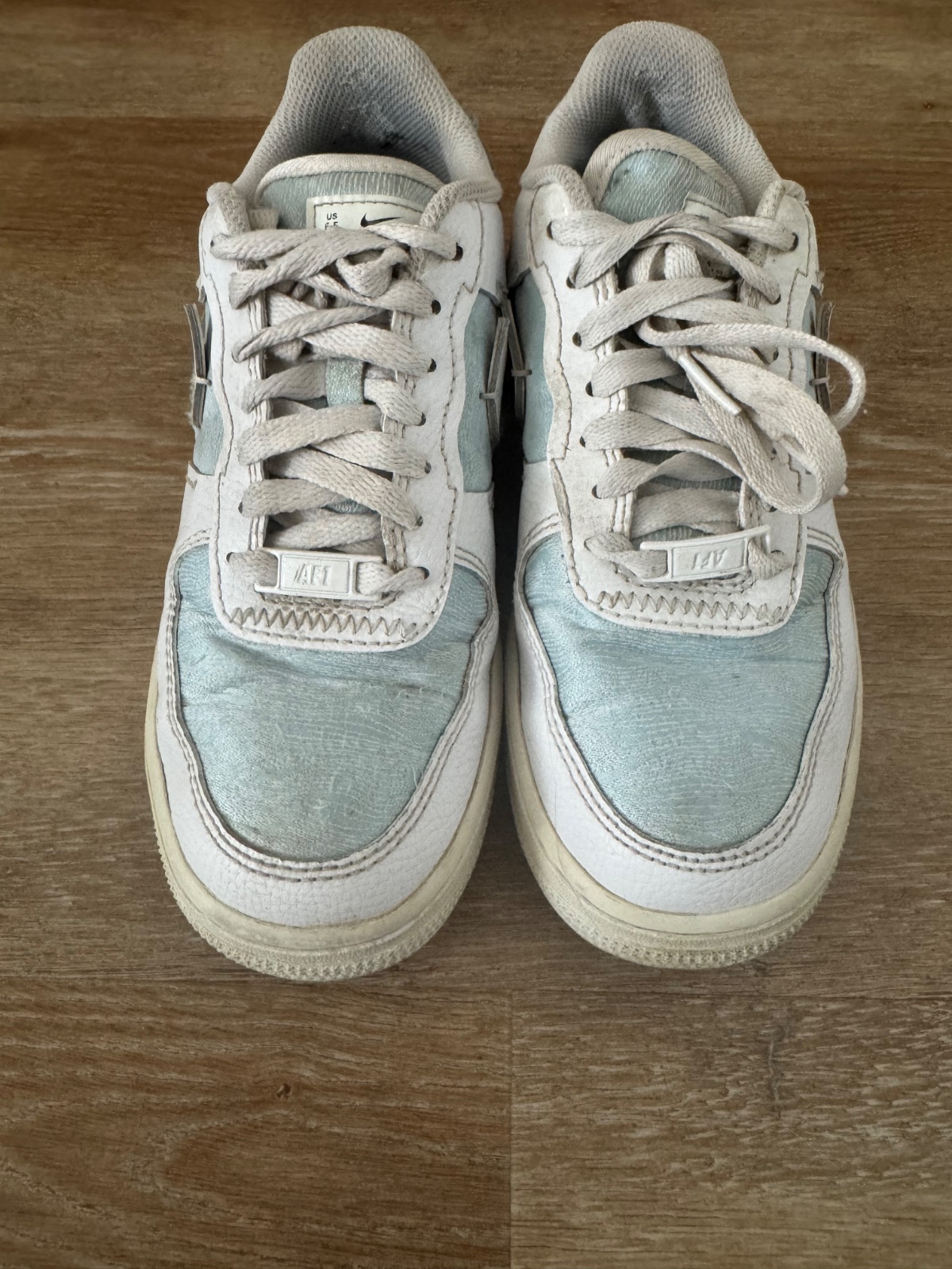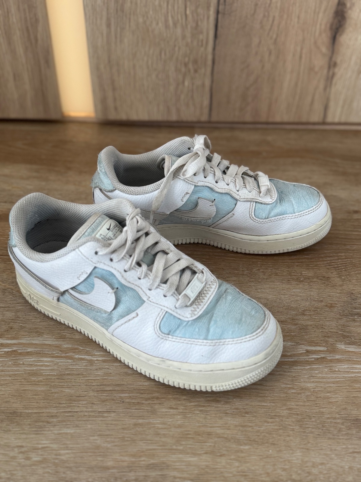 Ponúkam krásne štýlové tenisky Nike Air Force 1 LXX vo farbe Glacier blue a white. Veľkosť je 37,5 a vnútorná dlžka 23,5cm, čo aj sedí. Sú kožené v kombinácii s textíliou. Boli nosené ale určite ešte dobre poslúžia. PC vysoká. Poštovné podľa taríf.