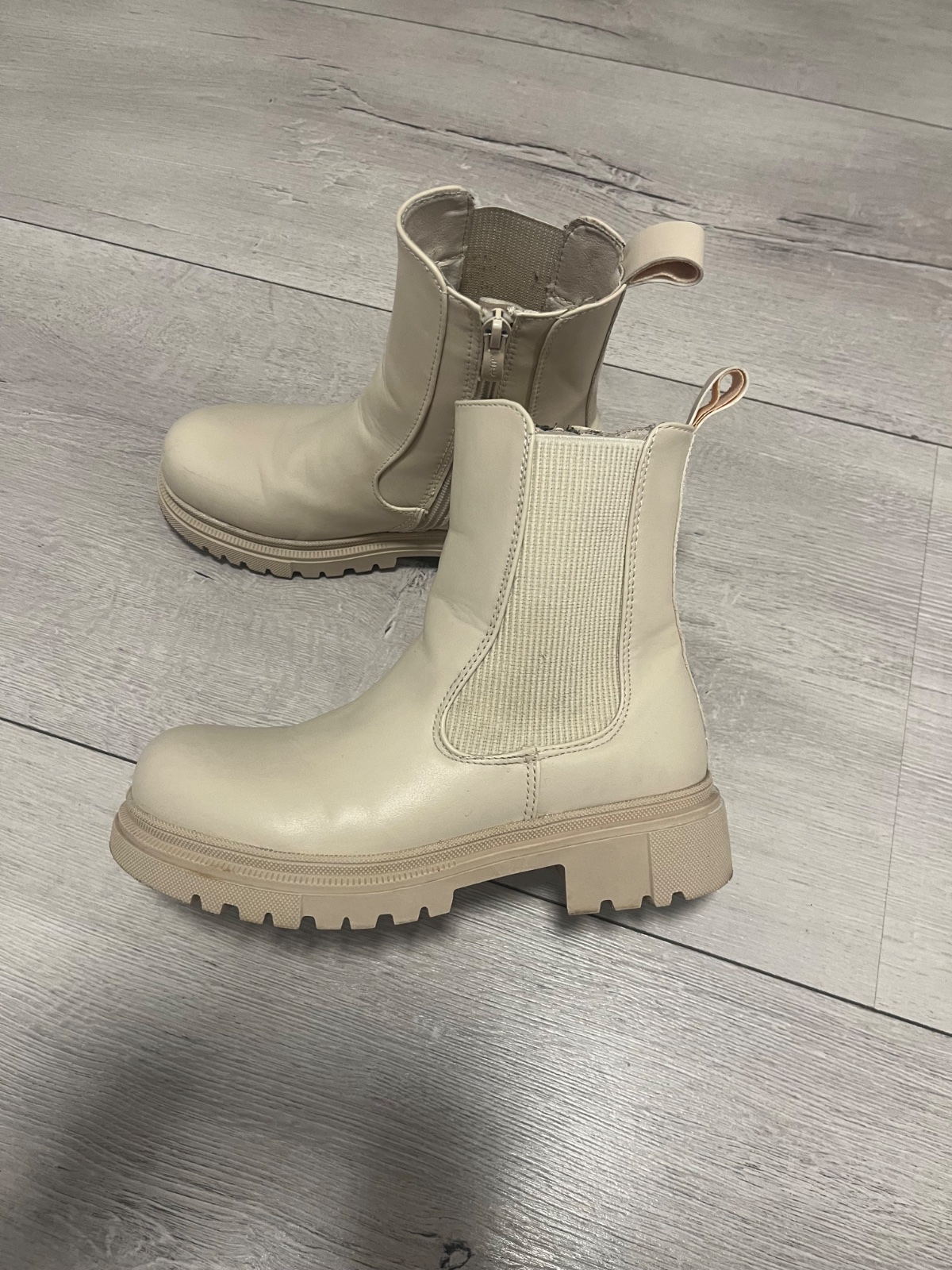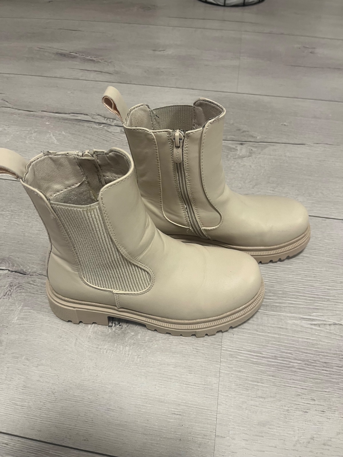 Dievčenské členkové topánky značky F&F. Krémová farba. Topánky sú jemne zateplené čiže sú vhodné na jeseň/jar. Cena: 12eur + poštovné