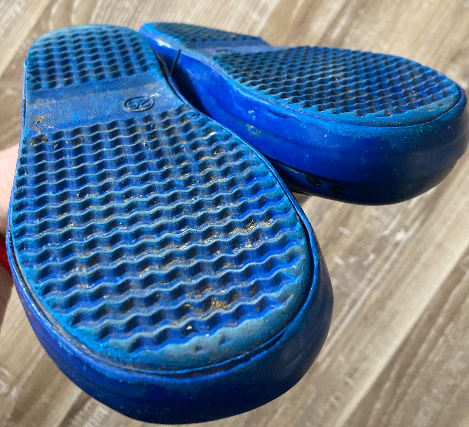 Nosené,ešte určite poslúžia.stav všetko pekne vidieť na foto.na jednej podrážke ošúchané,nie je to diera len ošuchané spodok,a na jednej fľak vnútro od vody..(všetko pekne vidieť na foto)no donosenie poslúžia.sú pekné,ešte nositeľné..plus pošta.