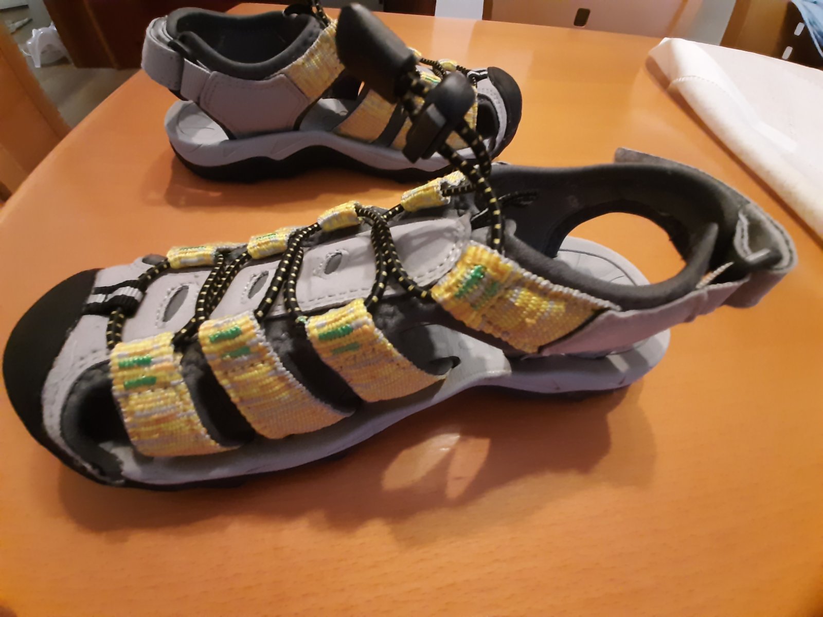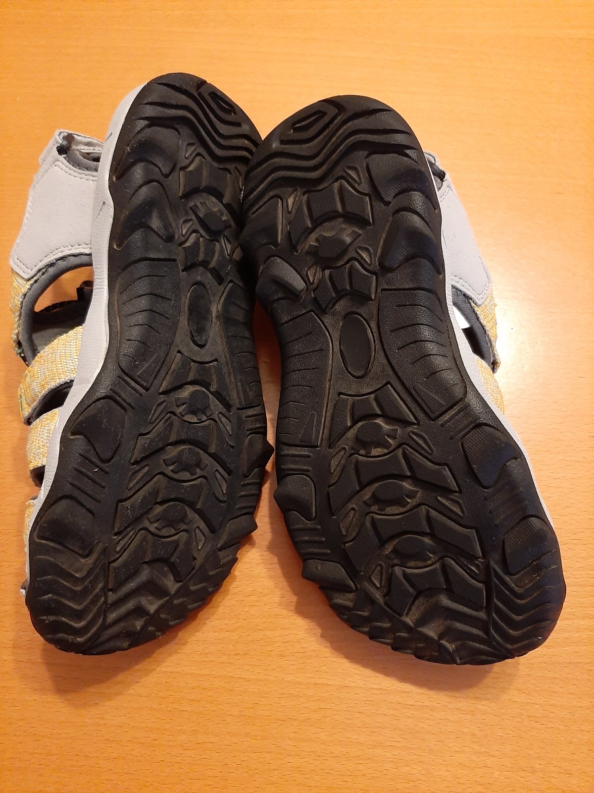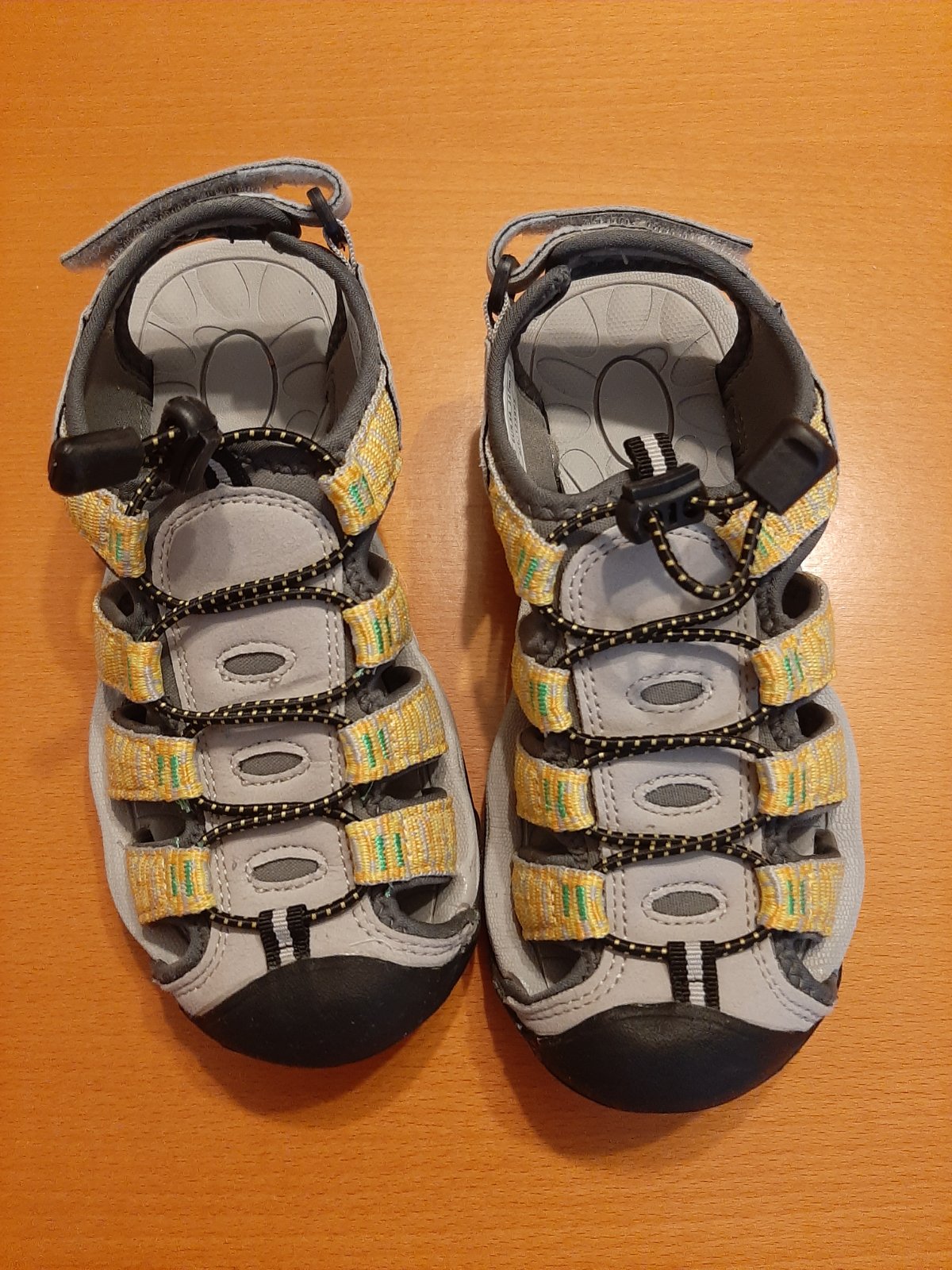 Svetlosede sandalky so striebornym akcentom, osuchany vzhlad. Velmi pekne, pohodlne a kvalitne. Sandalky su kozene. Zapinanie na suchy zips. Drzi vyborne. Su bez poskodenia, ako nove. Dcerka ma uz...