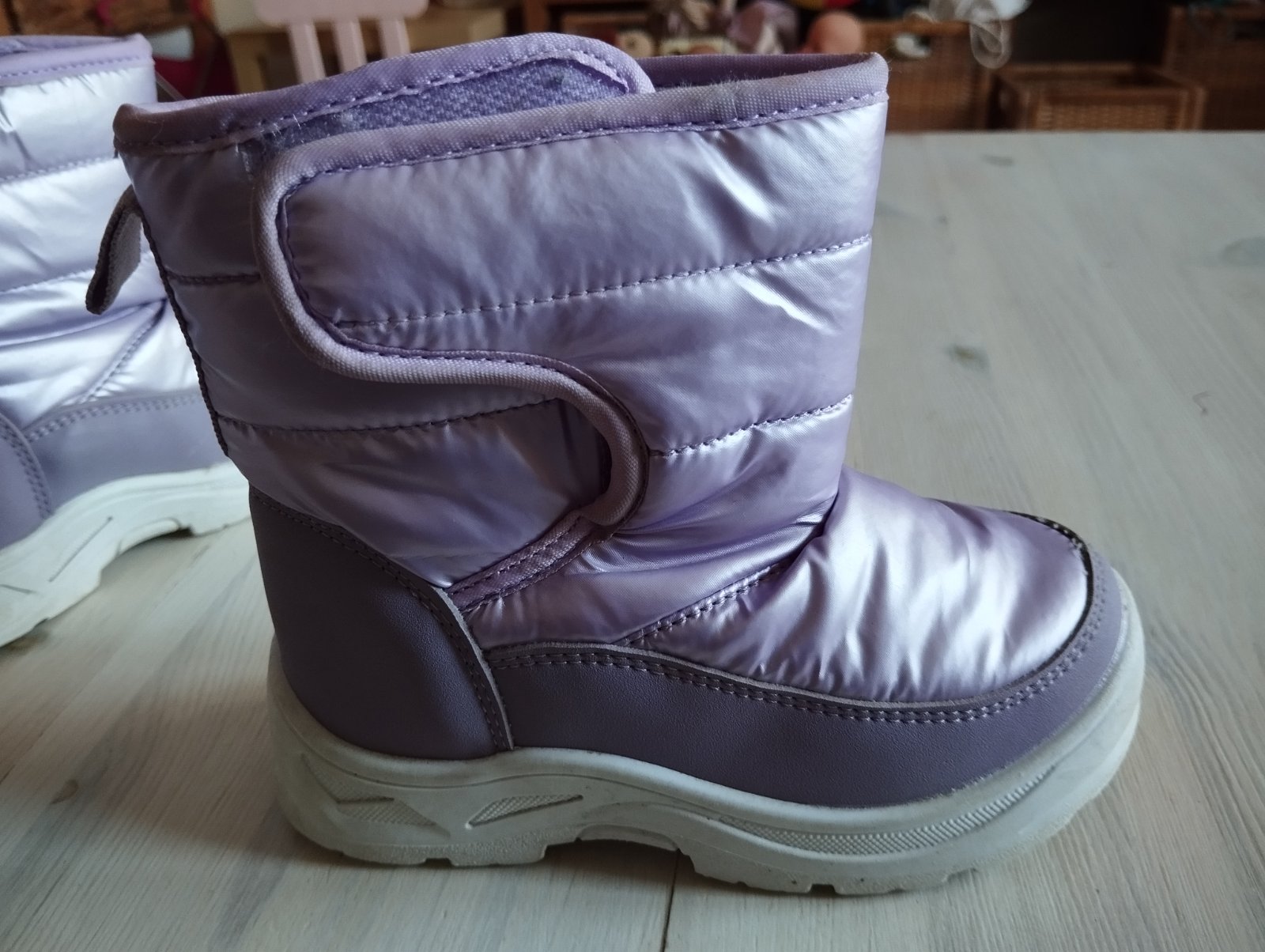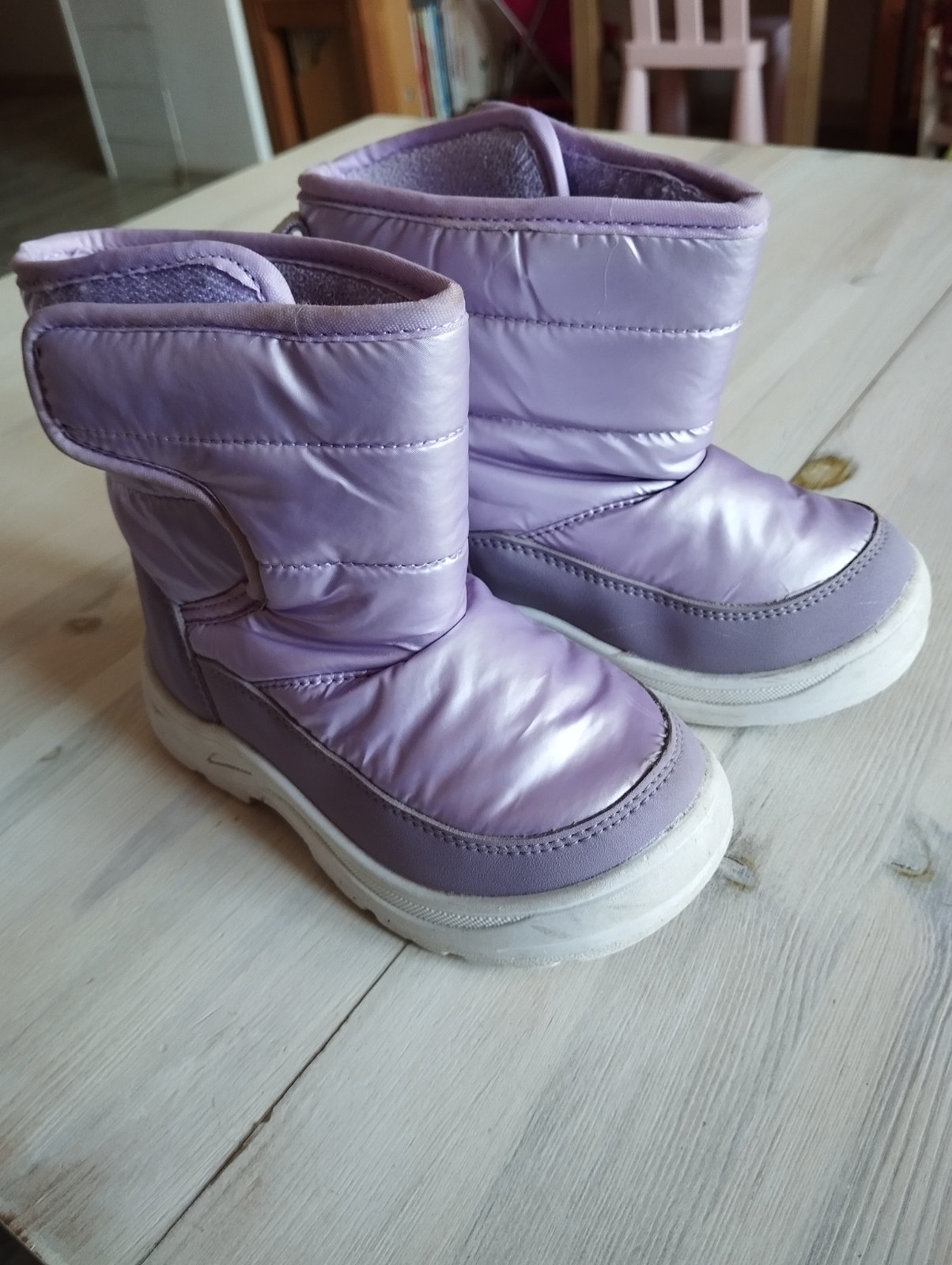 Nosené snehule, veľmi teplé, značka muflon, zateplene vlnou, vnútorná dĺžka 16,2cm. Jedna natrhnuta vzadu po sviku (vid foto), inak neznicene, neokopane.