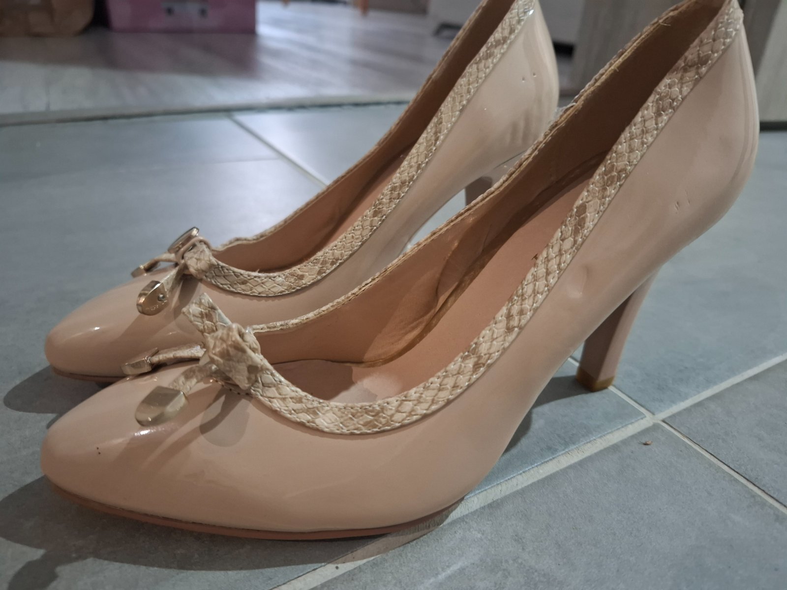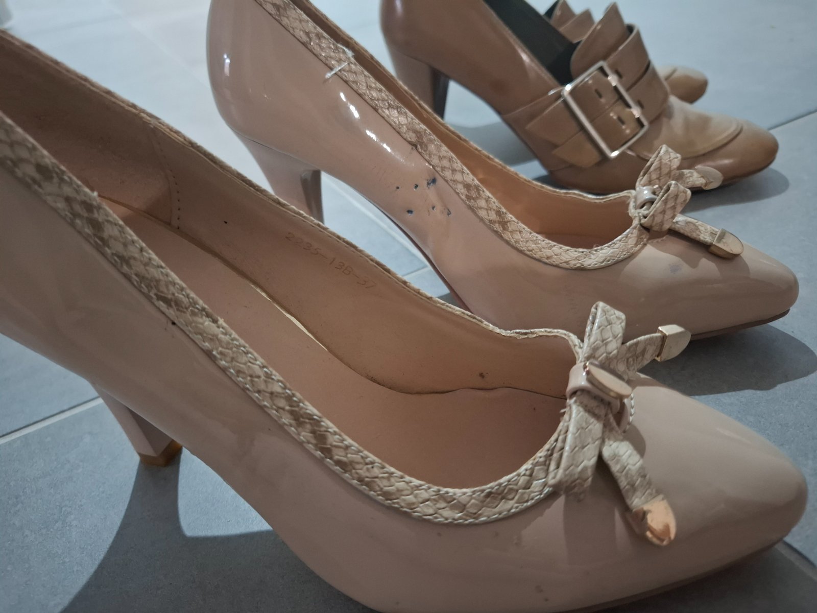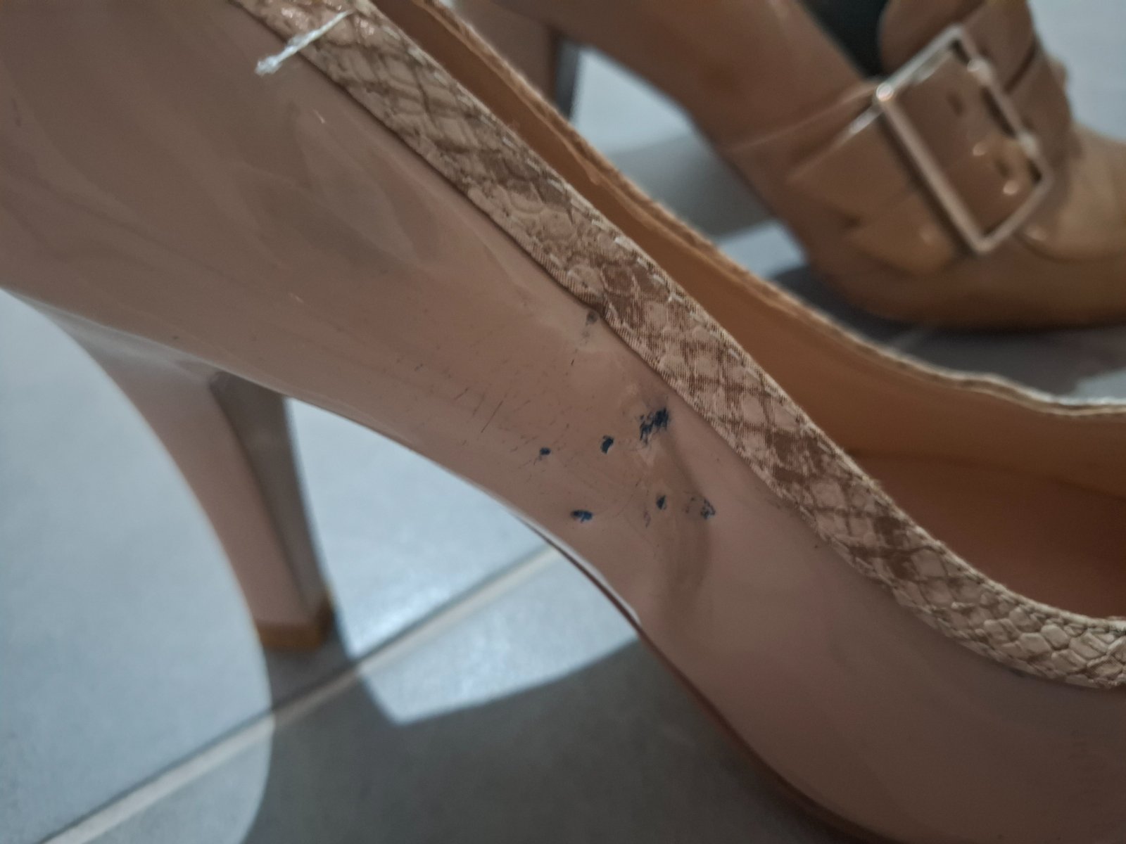 Zial na boku su otlacene opätky od uskladnenia iných topánok