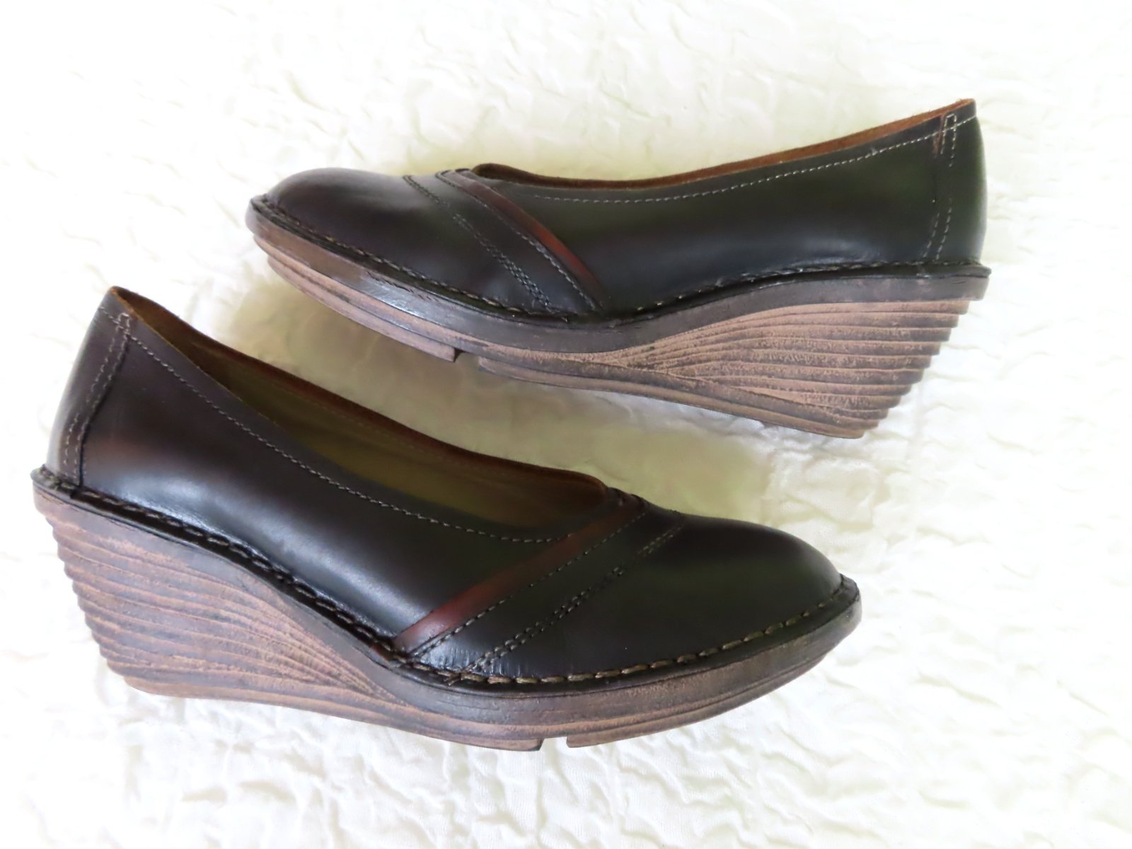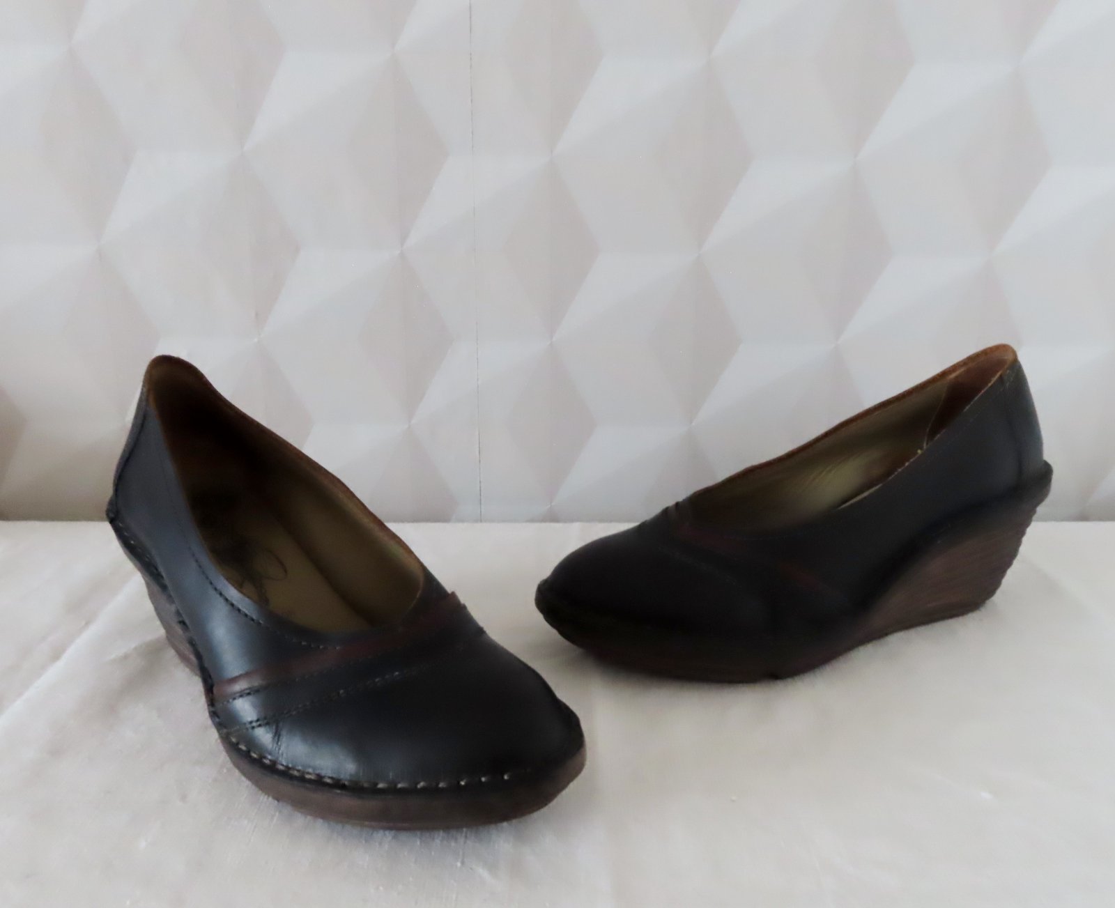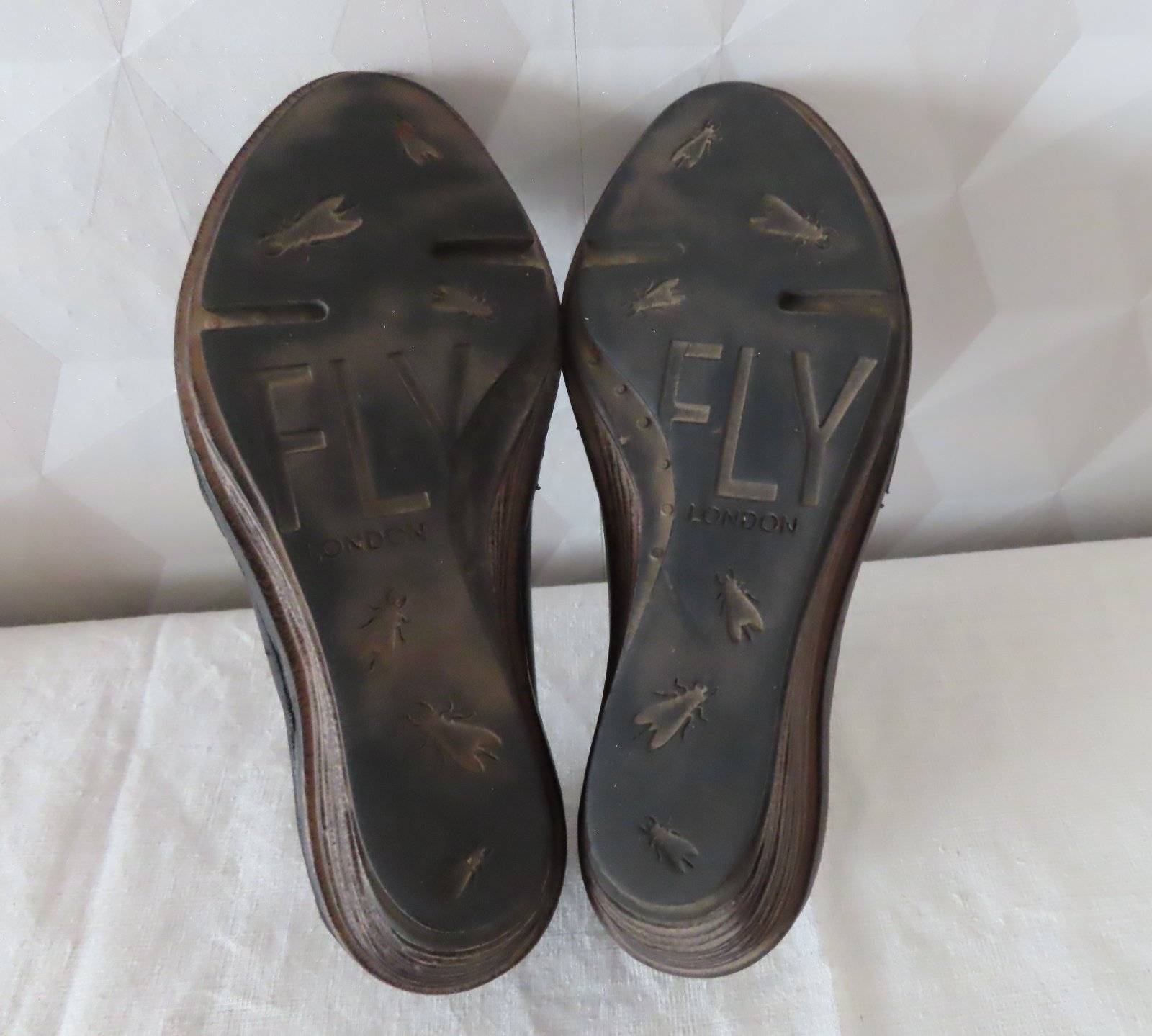 Kožené poltopánky na platforme, Fly London, veľ.40, vnútorná dĺžka 25,5cm. platforma pod pätou 6cm, vpredu 2cm. Farba je celkom tmavá, čokoládovohnedá.