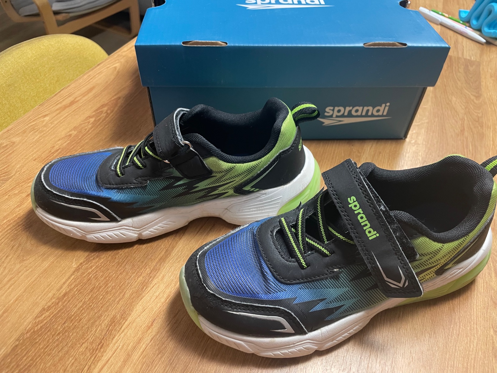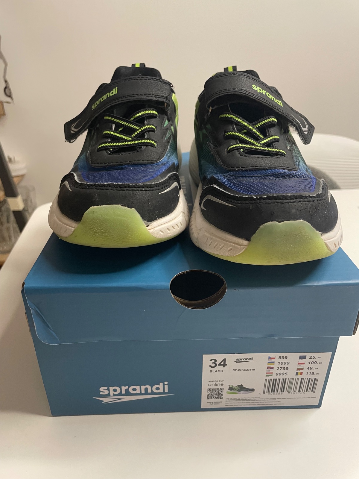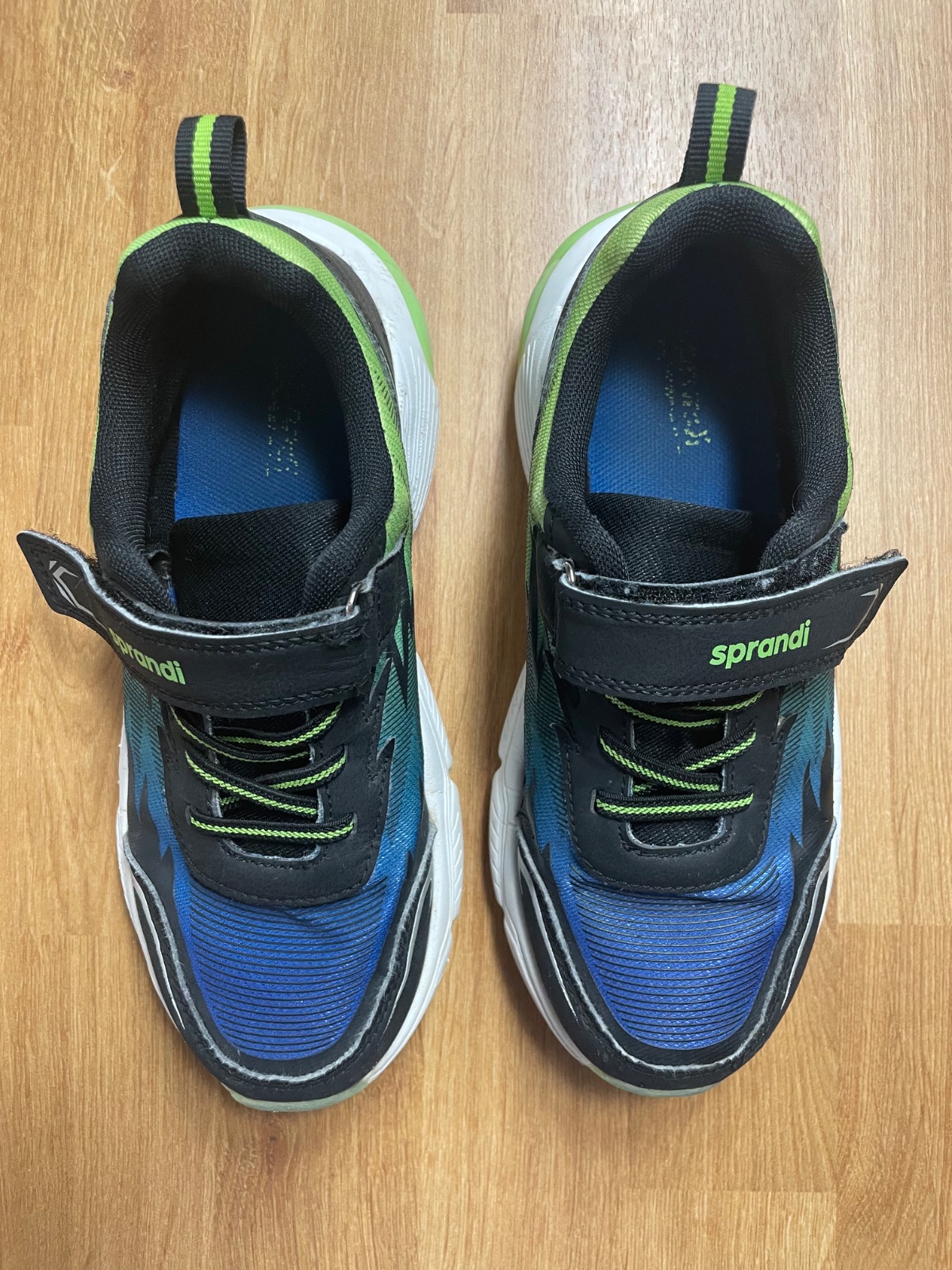 Svietiace tenisky značky Sprandi. Suché zipsy stále funkčné. Nosené občasne, boli to druhé tenisky. Nameraná vnútorná dĺžka je 22,5cm