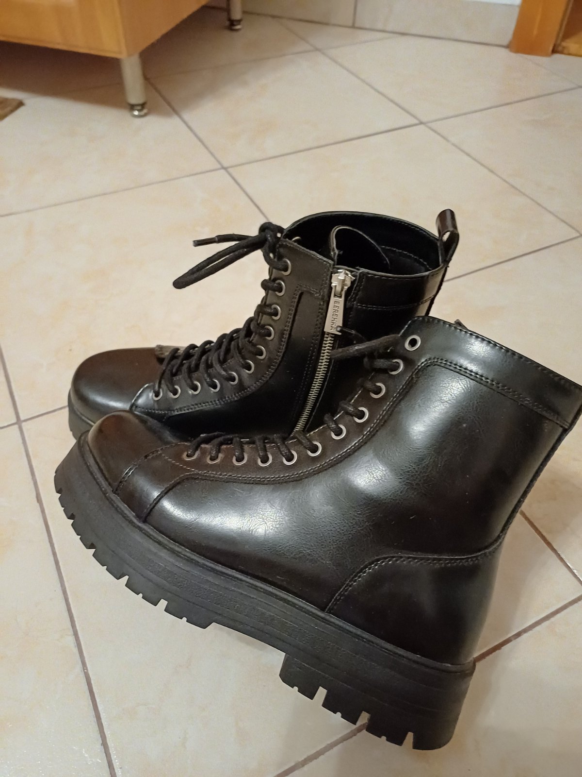 Ponúkam na predaj jesennú, čizimnú obuv na platforme pre chlapcov, alebo pánov. Nenosené, nové. Veľkosť na 42 nohu sedí. Zapínanie na zips a šnurovanie. Vnútro podšité textilnou stielkou. Posielam len poštou +dobierkou.