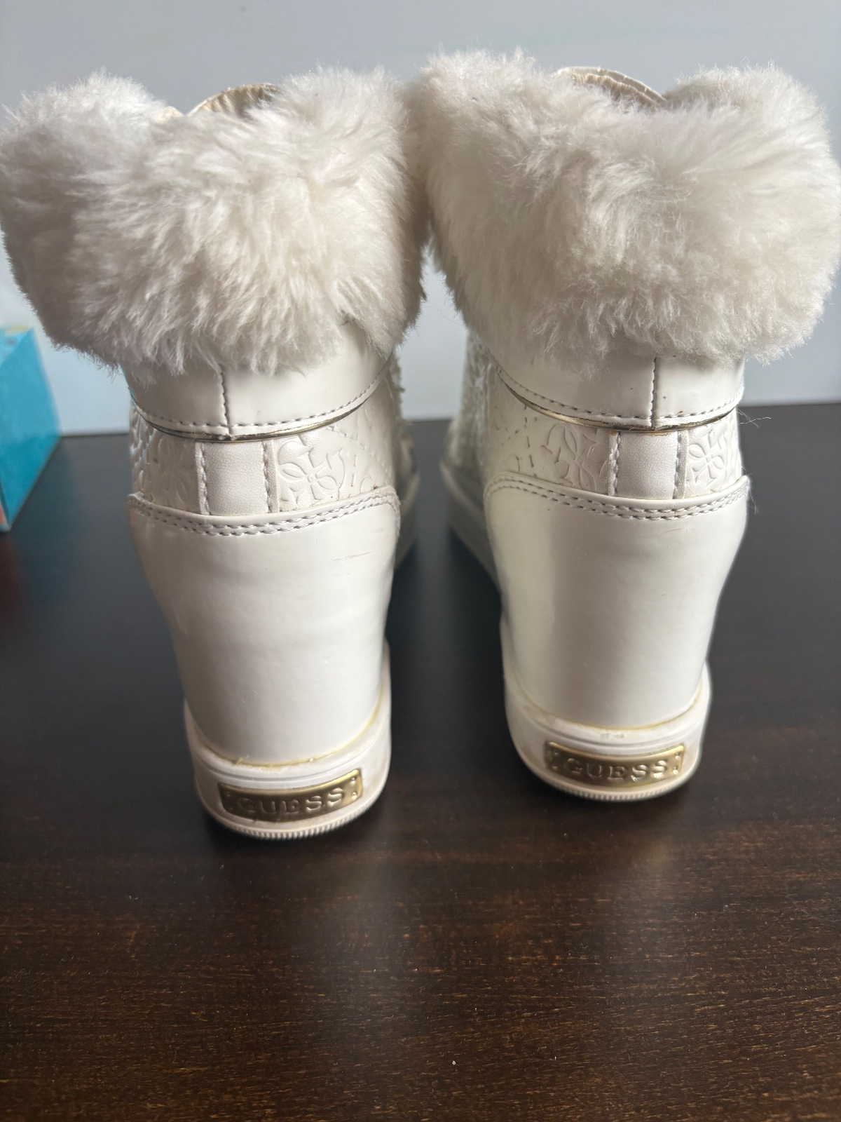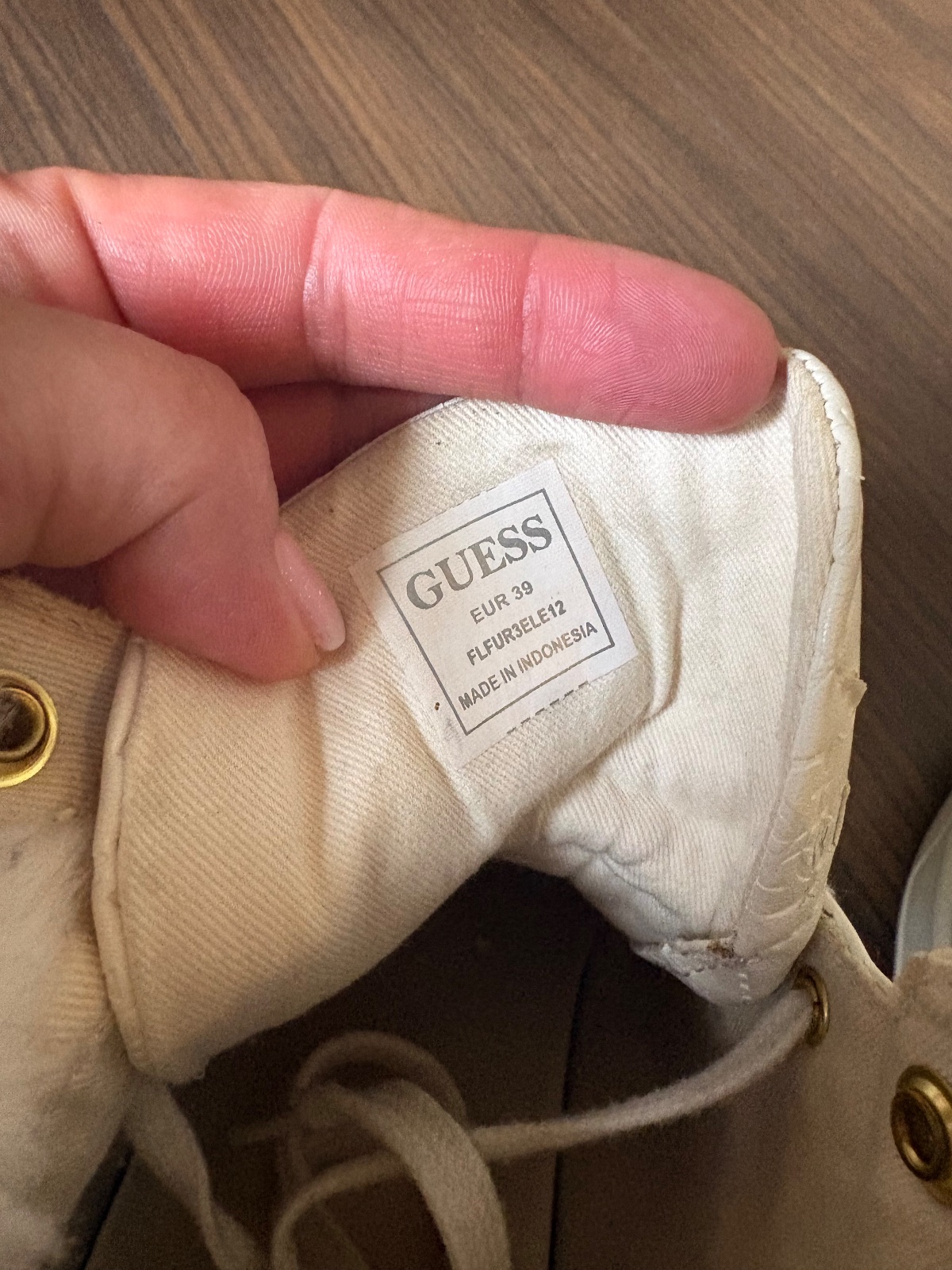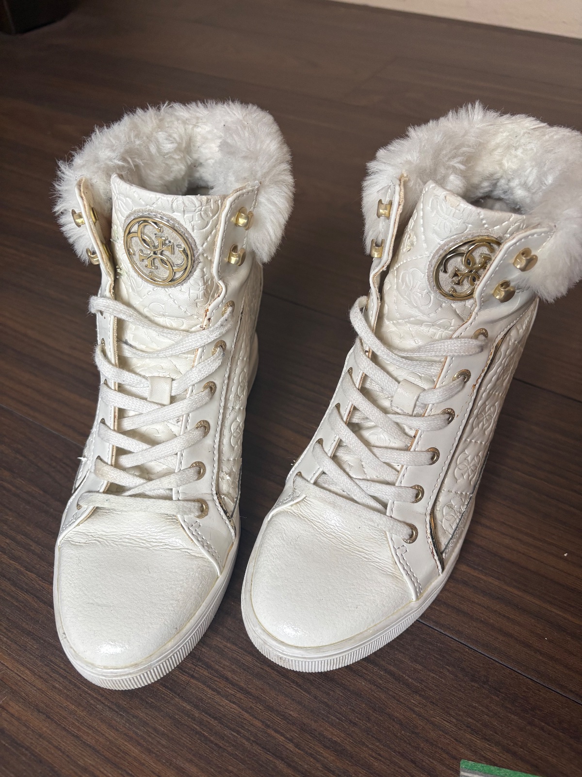 Pekne biele čižmičky značky Guess, no začína pukať koza po bokoch na nich . Vid foto