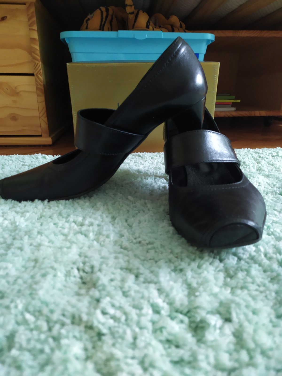 Elegantné topánky, nosené príležitostne, napriek tomu na oboch jemný škrabanec. Viď foto. Stále v peknom stave. Celokoženné, p.c.okolo 60 eur.