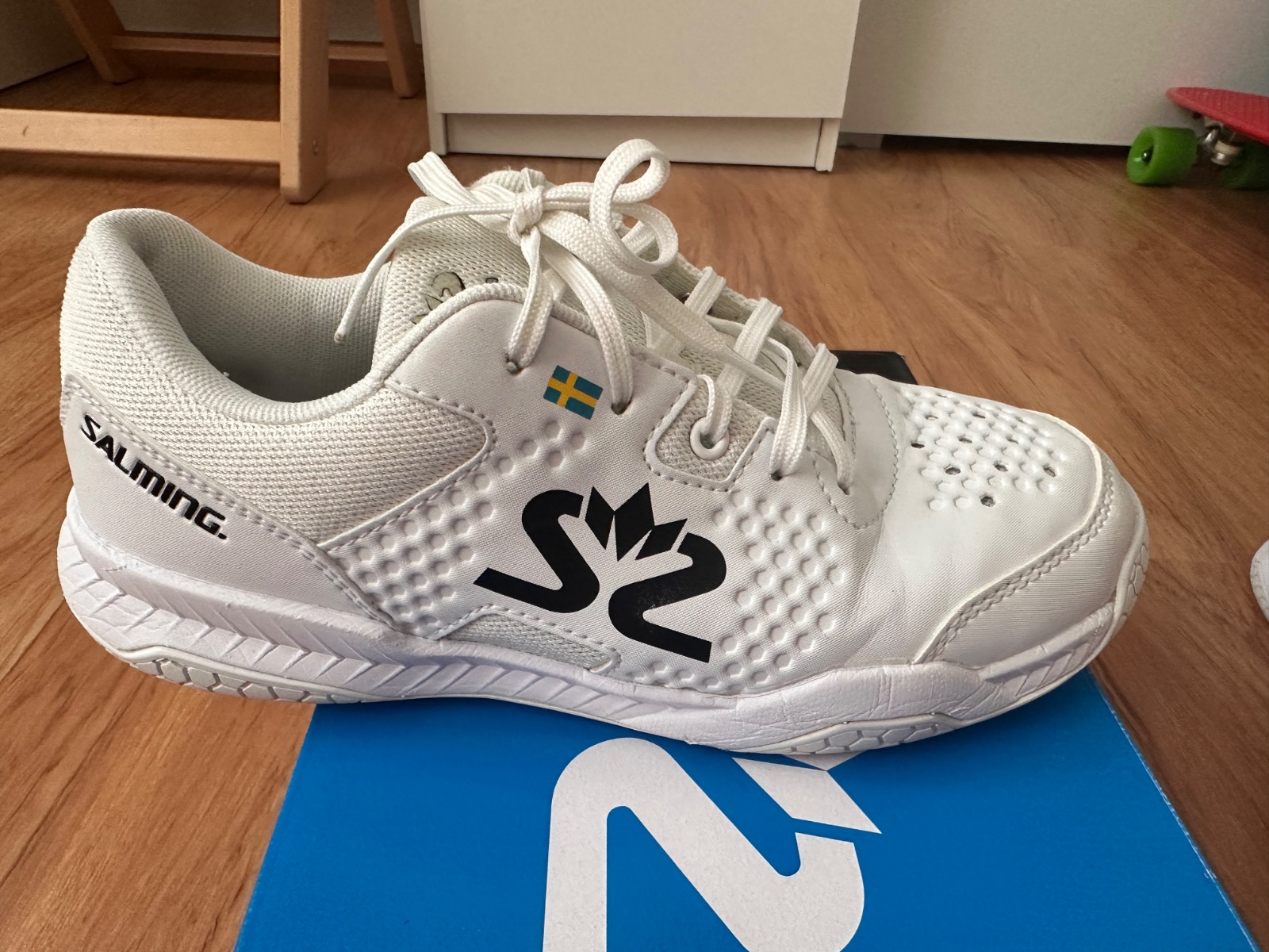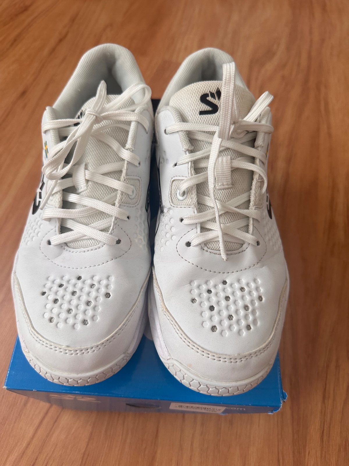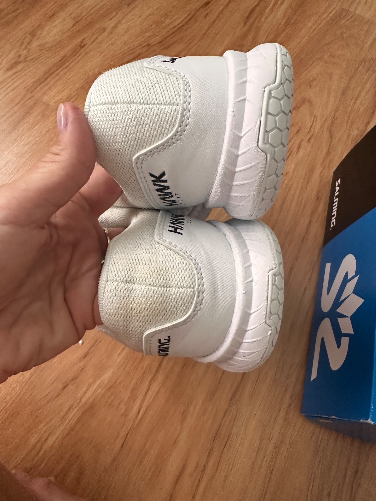 Po jednom dieťati v perfektnom stave bez poškodenia. Krásne biele Unisex, model Hawk court shoe Jr. Povodna cena 1699 CZK teda asi 68€.