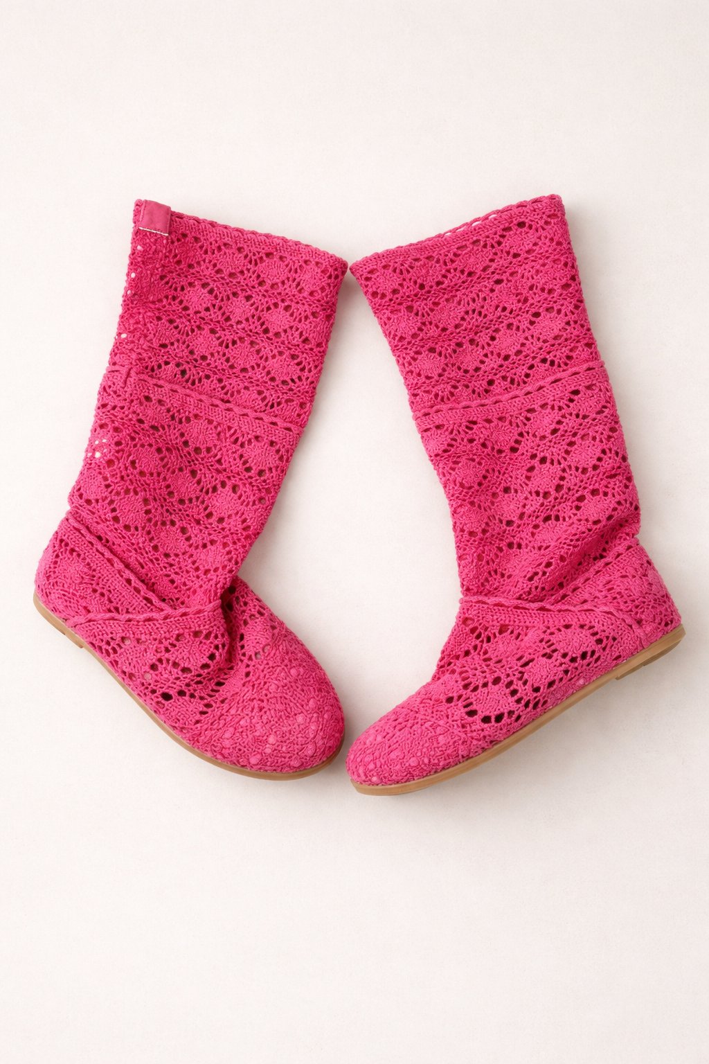 Originálne háčkované čižmy v sýtej ružovej farbe s čipkovým vzorom, ideálne na leto alebo teplejšie jarné dni.
