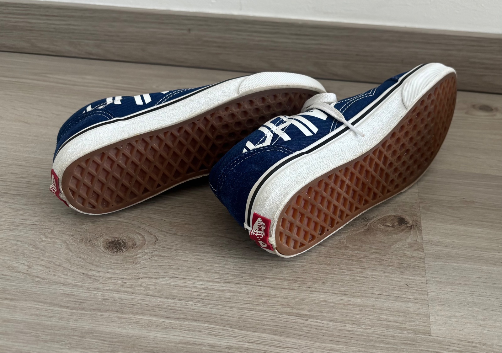 Modré tenisky značky Vans bez šnúrok. Sú unisex. Pre dievčatá i chlapcov. Platforma je nízka. Nosené jedno leto.