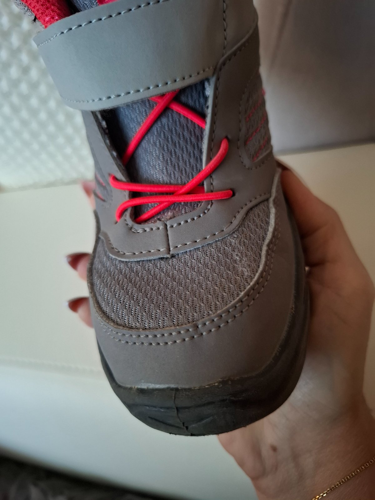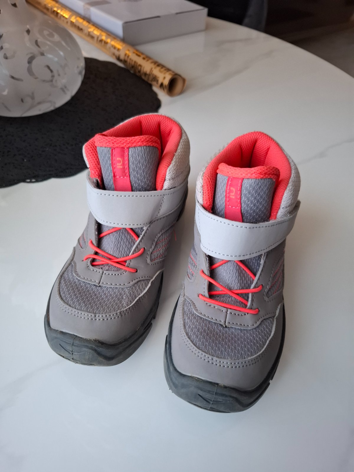 Raz obuté, zapínanie na suchý zips, vnútorná dĺžka je 21,5 cm