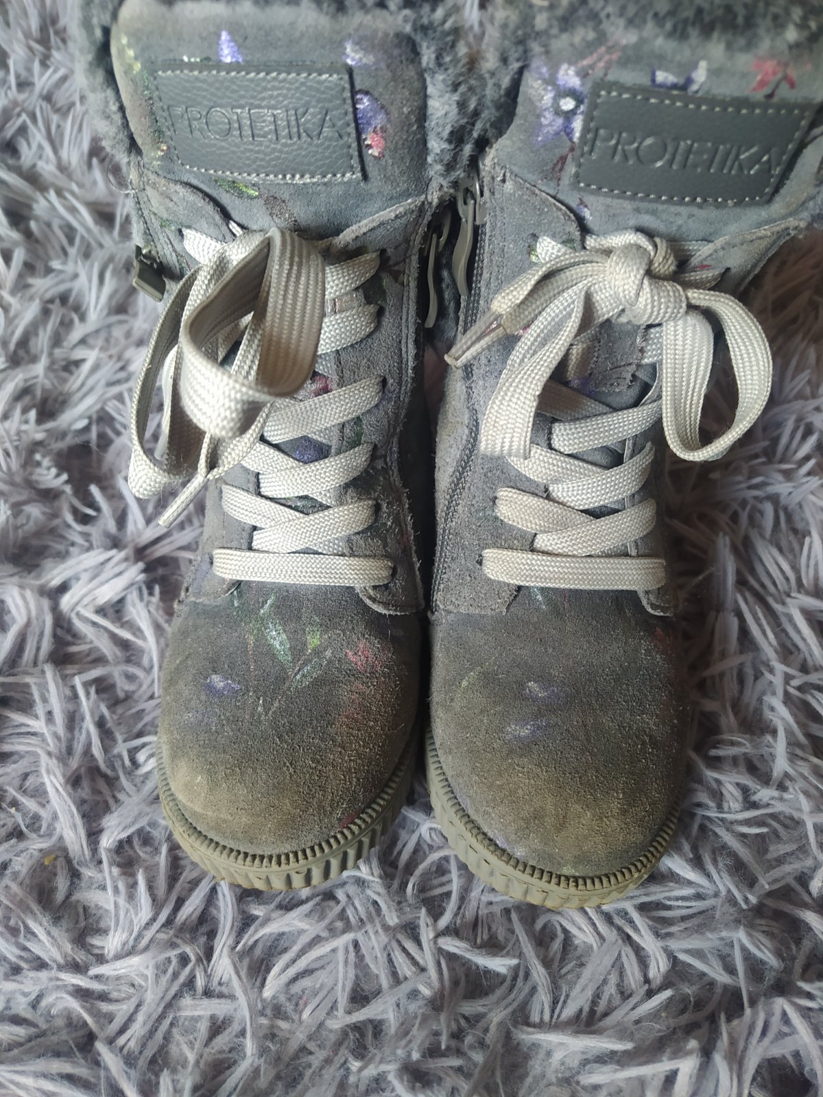 Predám čižmičky Protetika,v peknom nosenom stave.Mierne zateplené fleesom.Špičky sú minimálne okopané, v skutočnosti to nie je tak vidno ako na fotkách.Ináč sú ako nové.Na požiadanie premeriam.