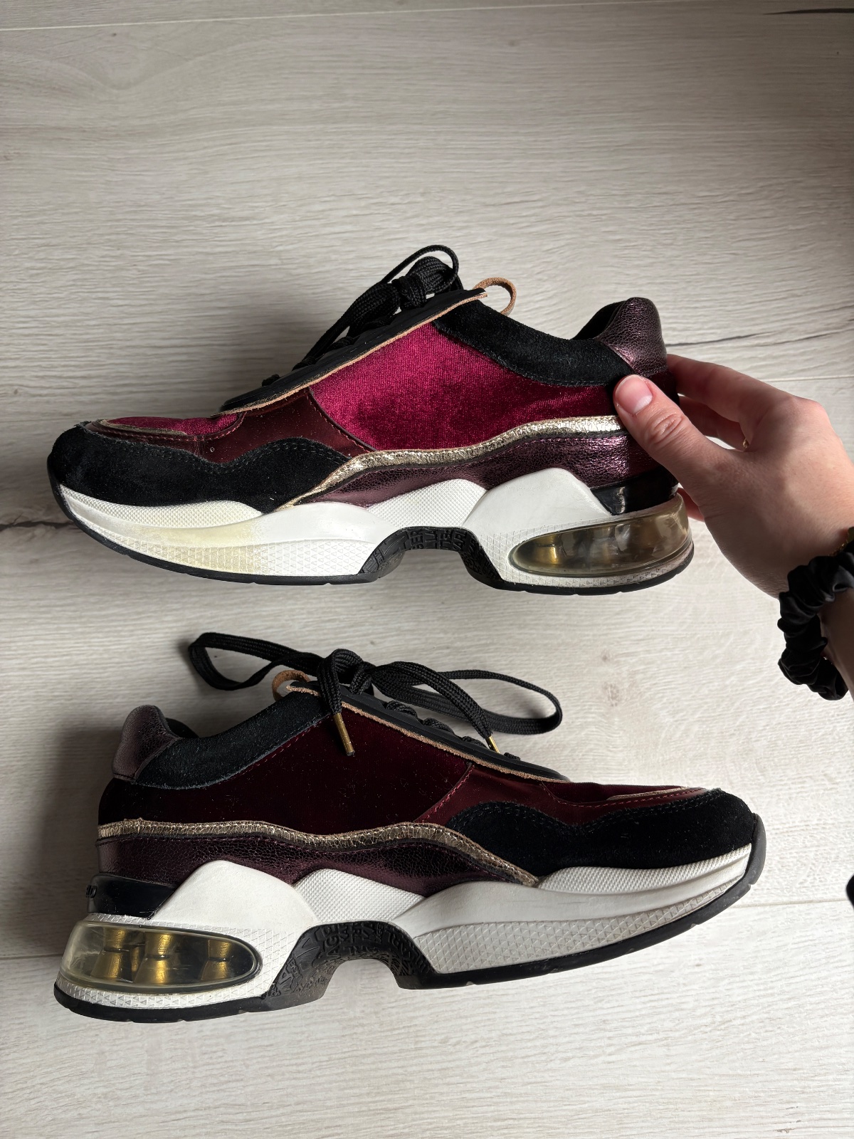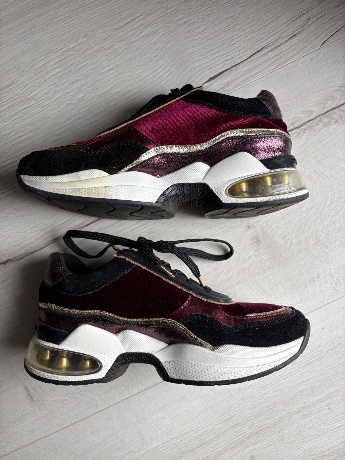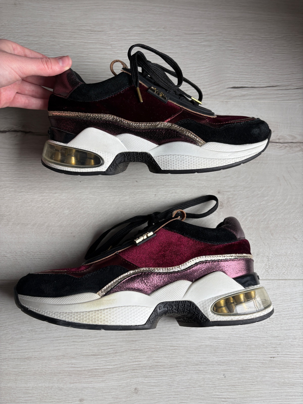 Sú v super stave, boli veľmi málo nosené. Na podrážkach vidno niekde zafarbenie (možno sa to bude dať ešte s niečim vyčistiť). Vnútorná dĺžka je 22,9cm.