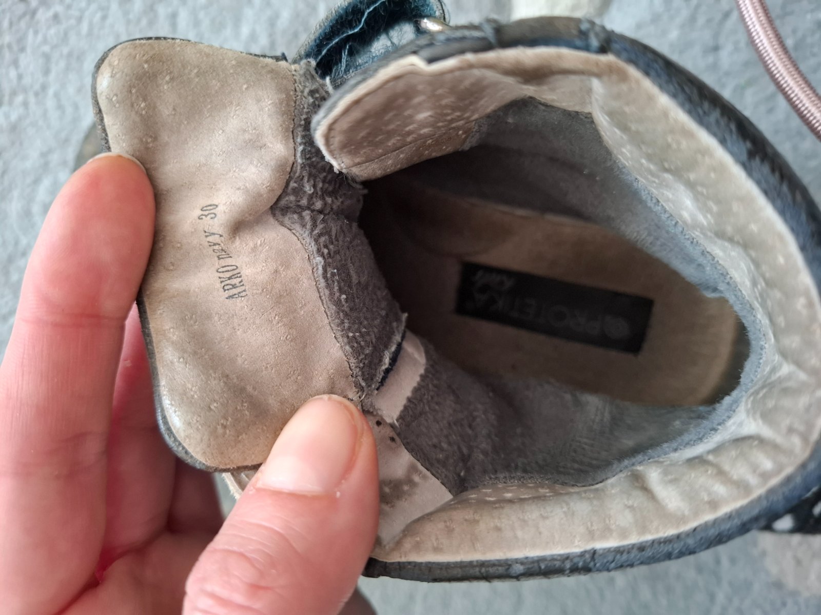 PROTETIKA zimné topánočky 30 čisté, vyprané majú šuchnutia-vid foto, akoby ta vrchná uprava topánky sa zošúchala, no deravé určite nie sú. VD je 18,5-19 cm, skôr 19cm, zle sa meria.