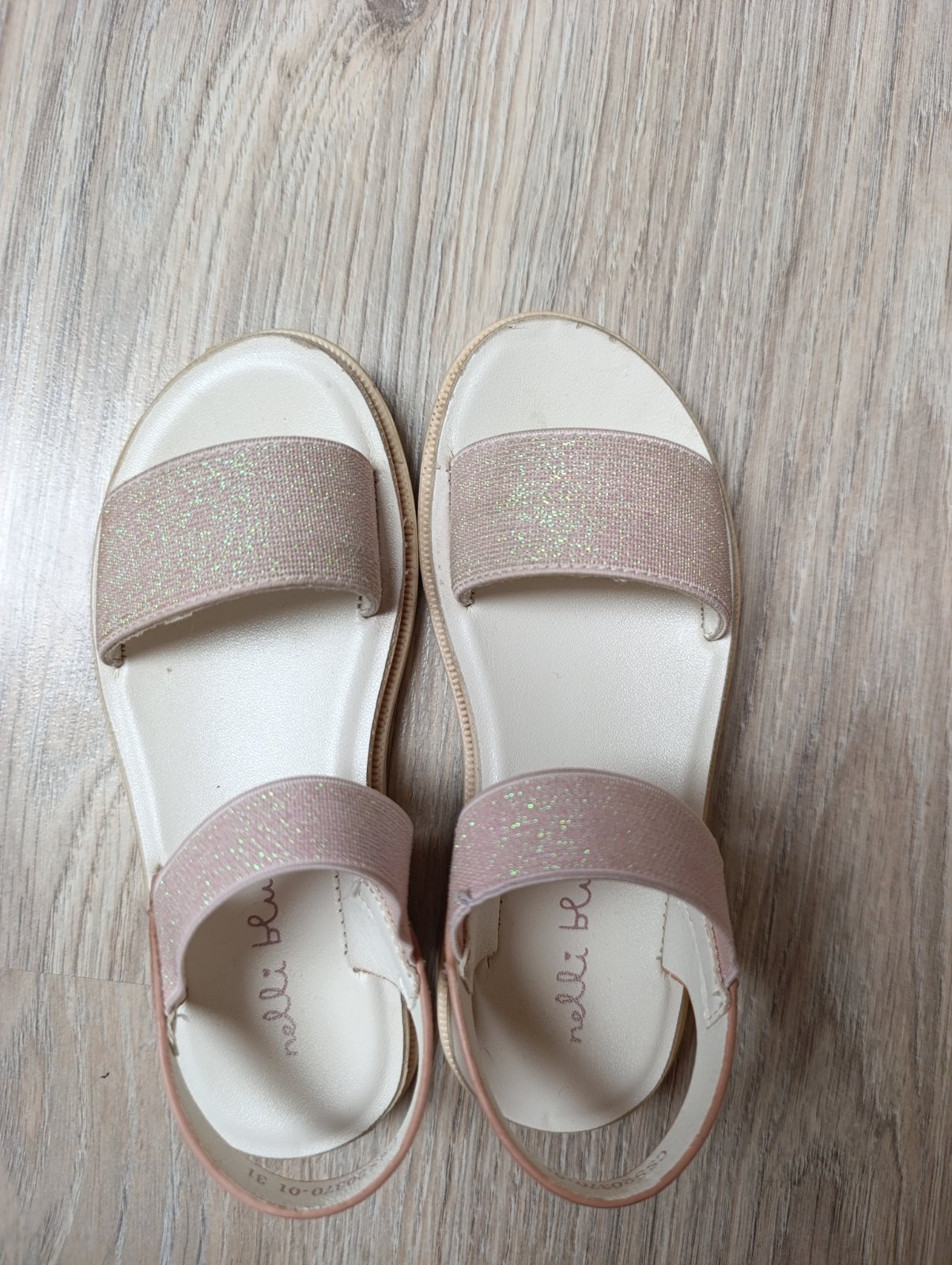 Letné sandálky. Značka: Nelli blu Veľkosť: 31 Celková vnútorná dĺžka: 19,5cm Vnútorná dĺžka od šva, po šev: 18,5cm Príležitostne nosené. Žiadne poškodenie, len trošku odlúpené trblietky po obv...