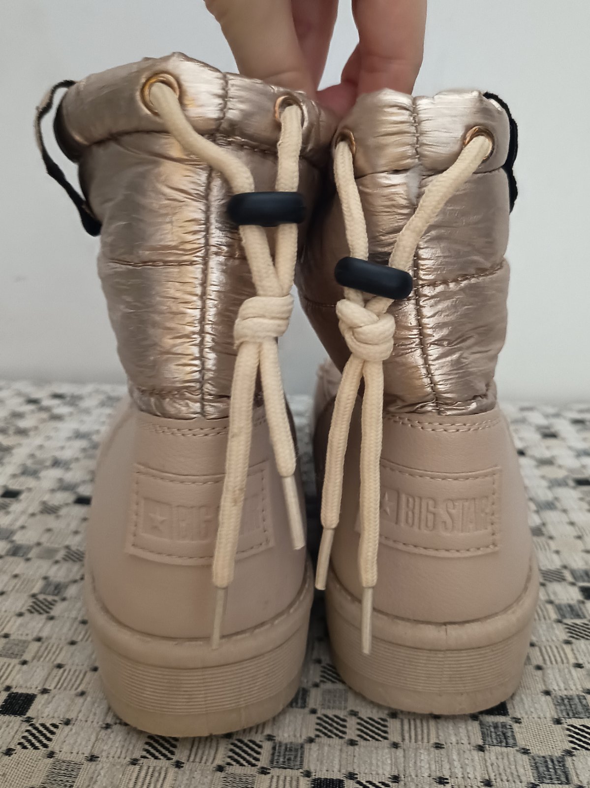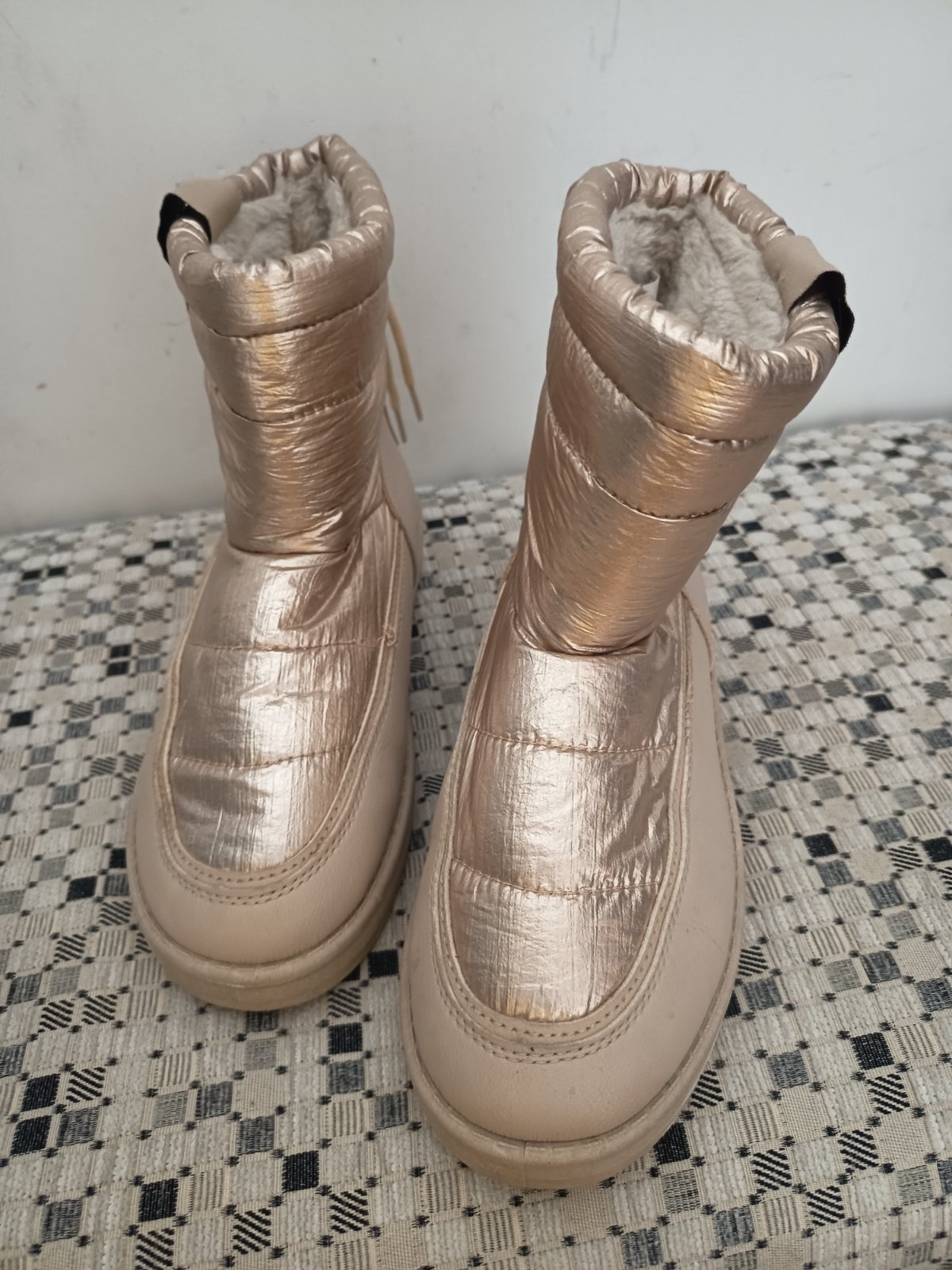 Úplne nové, mala som ich raz, veľkosť 38 sedi, kúpené za 50€, nevynosim, opätok vysoky 10cm, výška sary 41, obvod sary 39, zateplené
