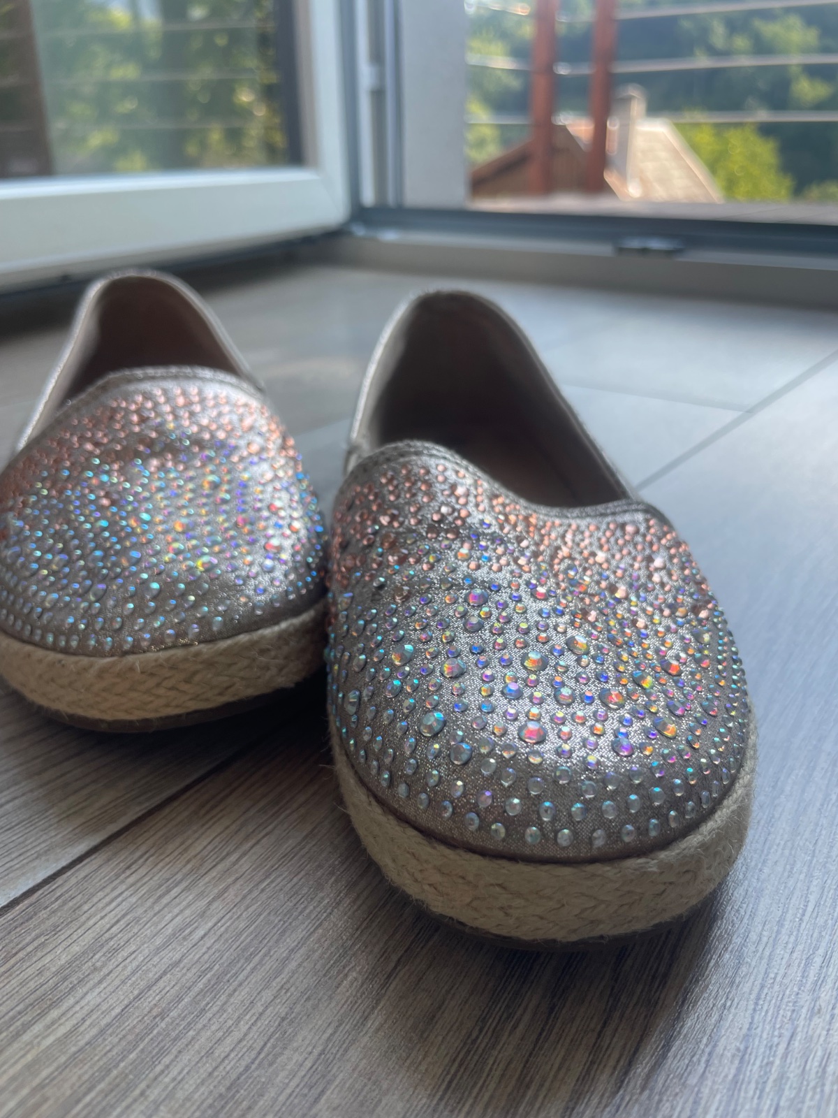 Na predaj veľmi pekné topánky kupované v Deichmanne. Majú efektné kamienky, sú pohodlné, taká väčšia 39.