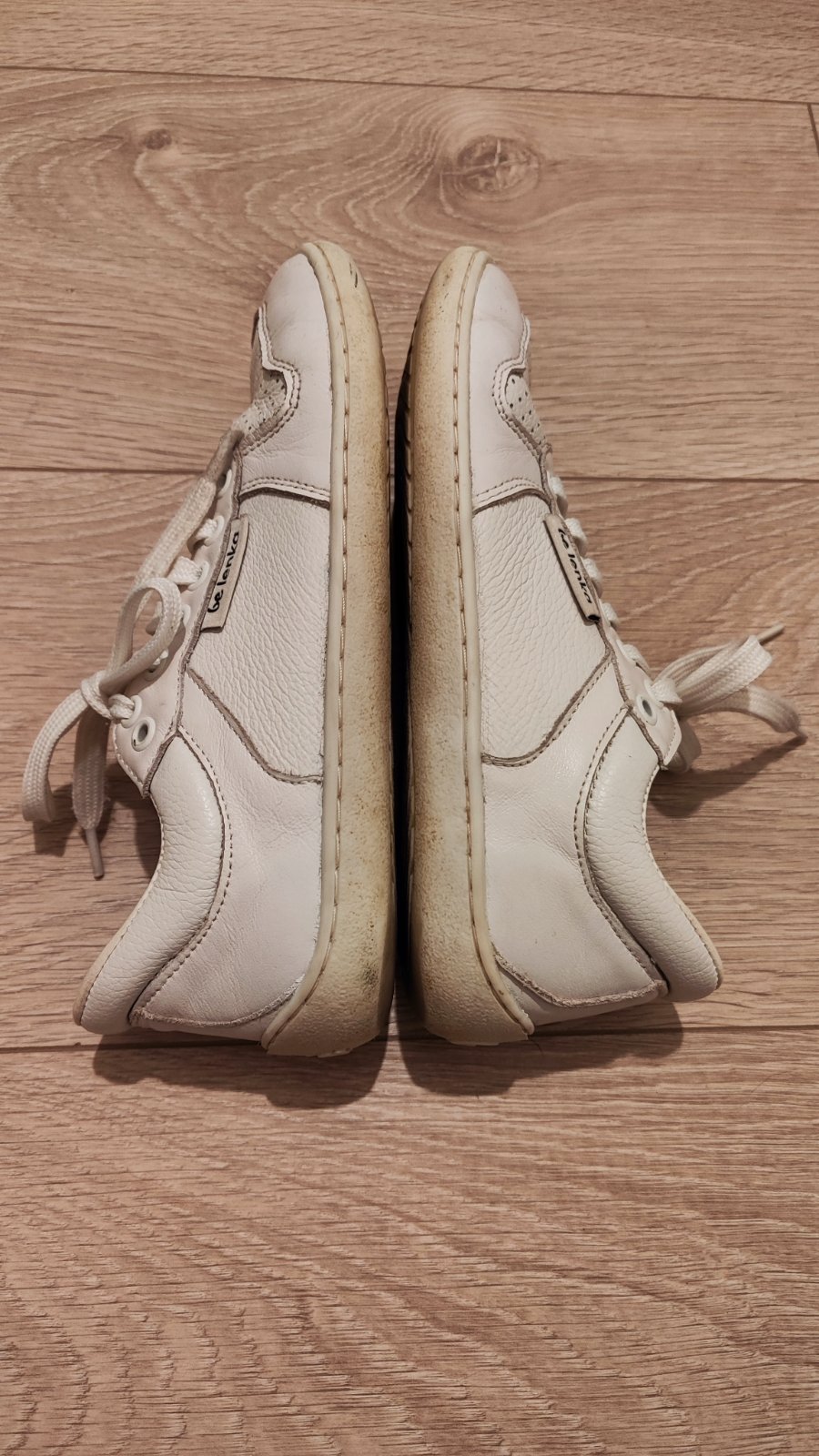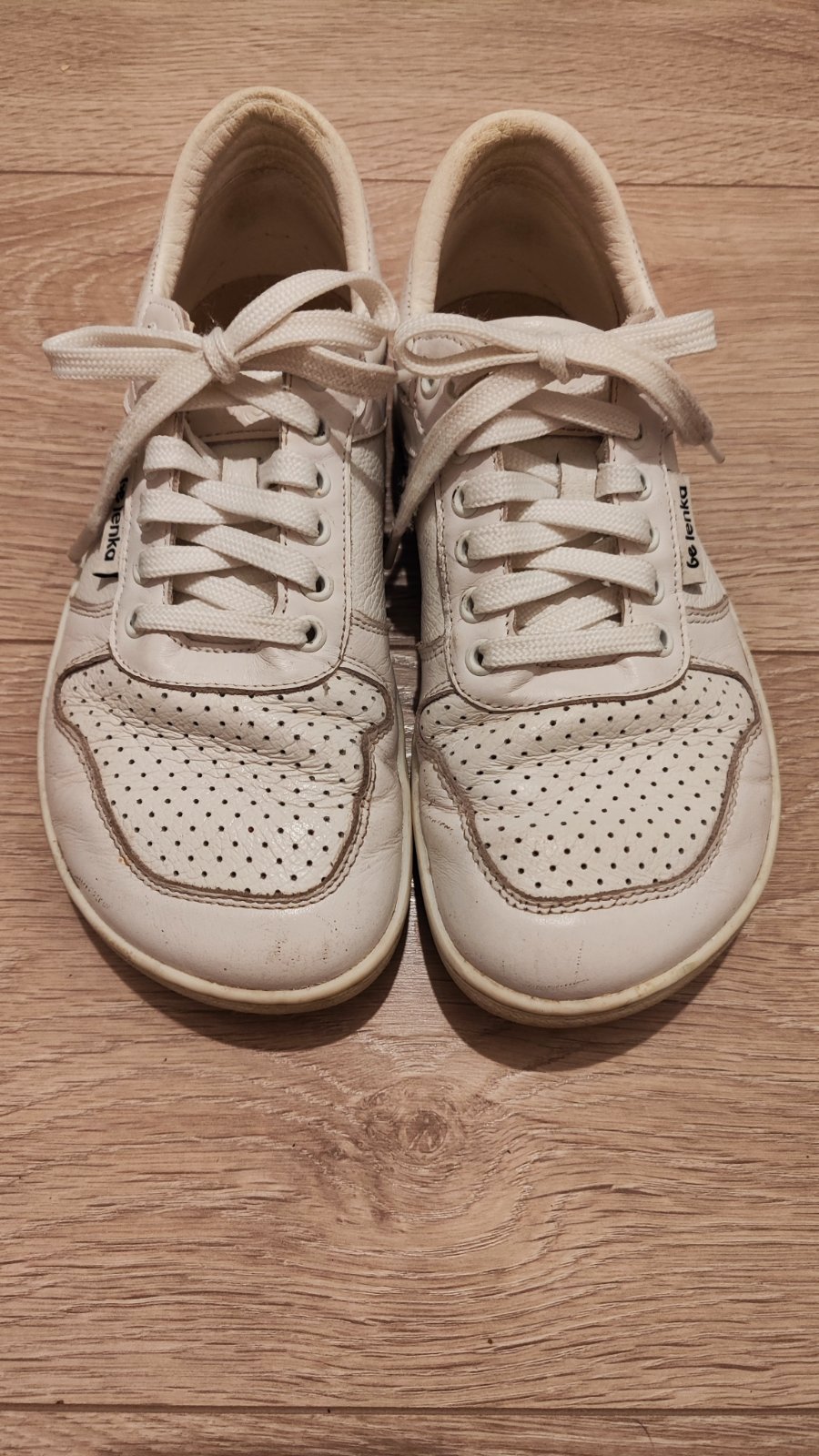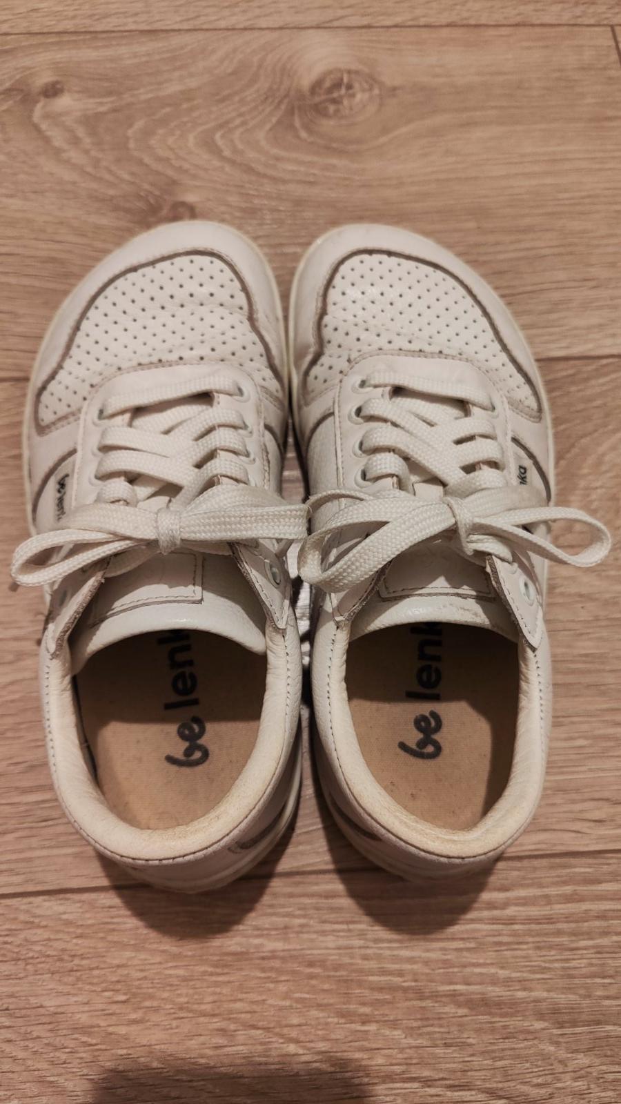 Kožené barefoot tenisky Barebarics, veľkosť 36. Intenzívne nosené cca 10 mesiacov, čo je aj vidieť - ošúchané špičky, odlepené reflexné prvky (logo). Tenisky sú funkčne v poriadku, avšak po estetic...