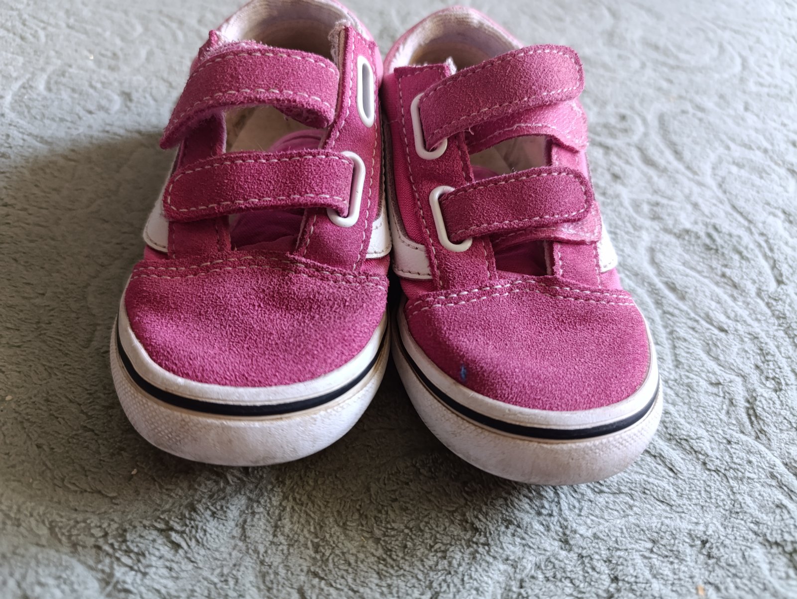 Predam dievcenske kozene tenisky znacky Vans. Tenisky su ruzovej farby na snurovanie, v zadnej casti je aj zips. Velkost 25.5. Vnutorna dlzka 16.5 cm.