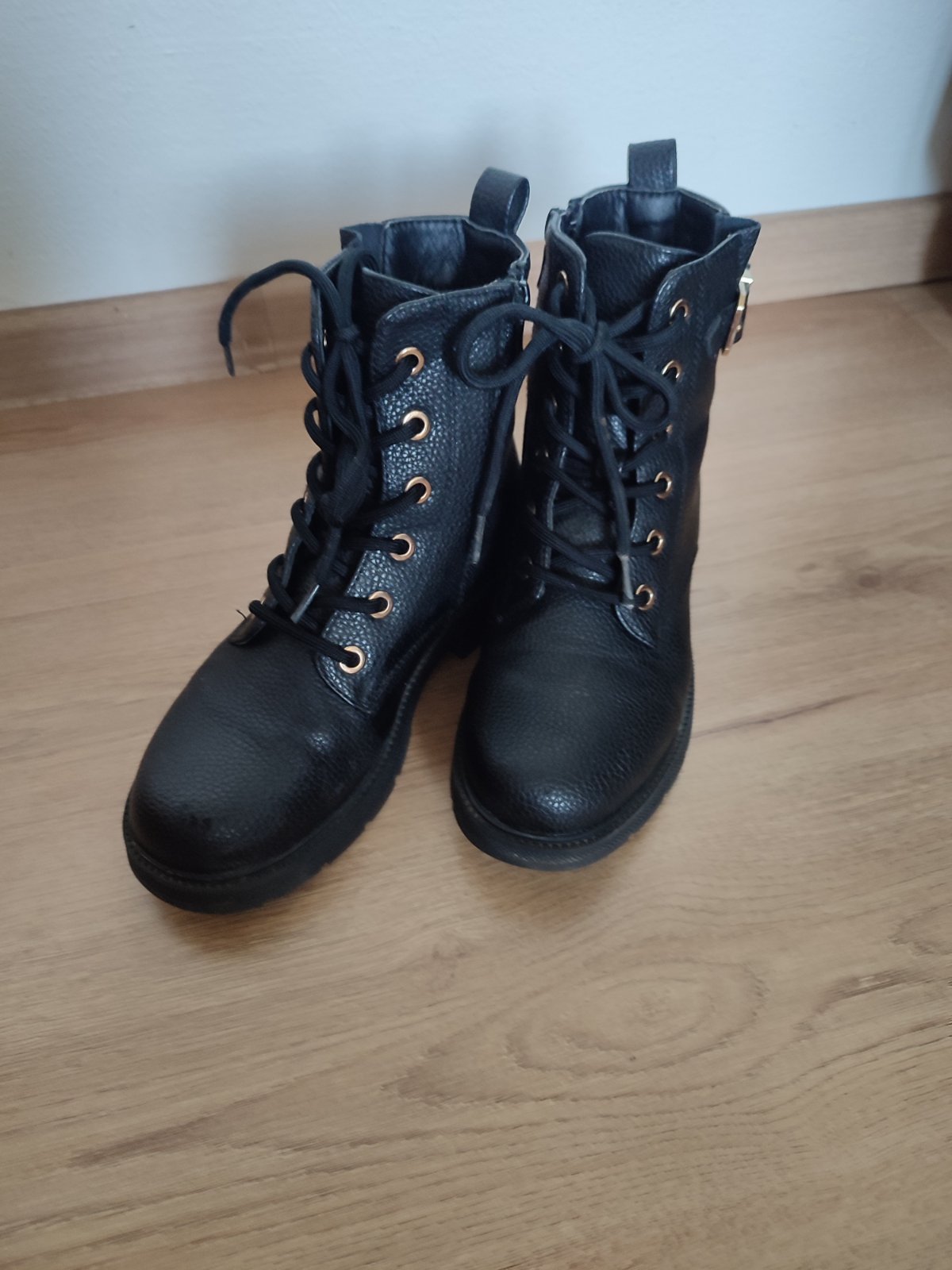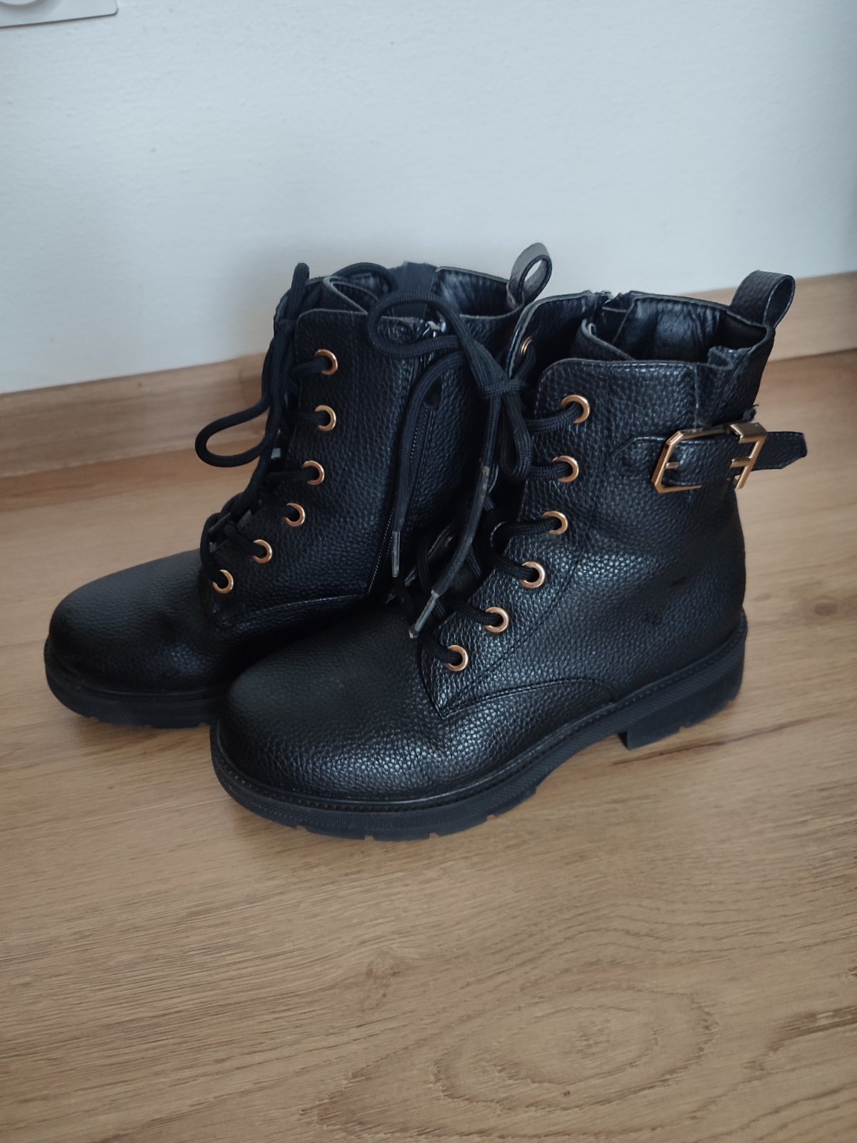Predám mierne zateplenú dievčenskú prechodnú obuv veľkosti 34. Mierne známky opotrebenia na pravej nohe viď foto. Cena je bez poštovného.