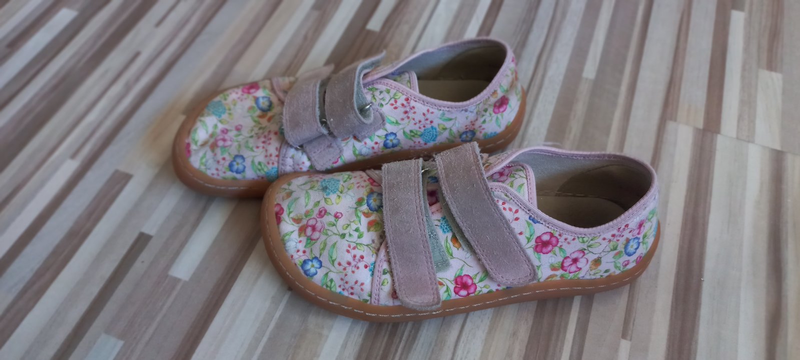 Tenisky nosene ako prezúvky do školy. Nosene iba 3 mesiace. Vo výbornom stave. Len maju škvrnu na textilnej časti pri päte. Splìva s kvietkami. Ale je tam.