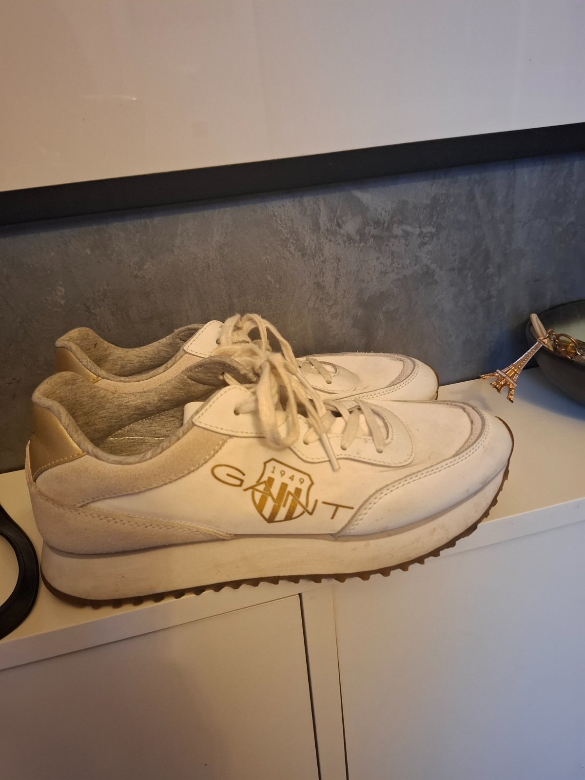Predám tenisky značky Gant. Dobrý nosený stav. Jedina vada na vnútornej strane jednej tenisky trošku zodrate vid foto. Ale kupila som vložky ktoré sa tam nalepia