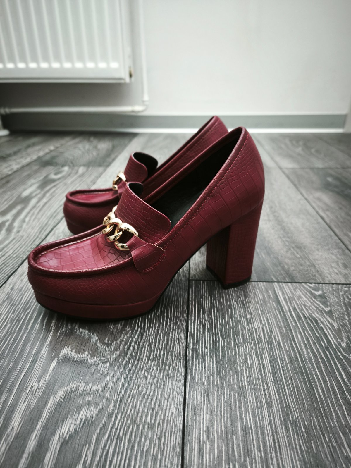 Krasne topanky/mokasiny na hrubom opatku velmi stylove obute len 2x v praci v top stave skoro ako nove. Sedia na uvedenu velkost 36 mne su zial velke potrebovala by som o cislo mensie. Pc vyssia.