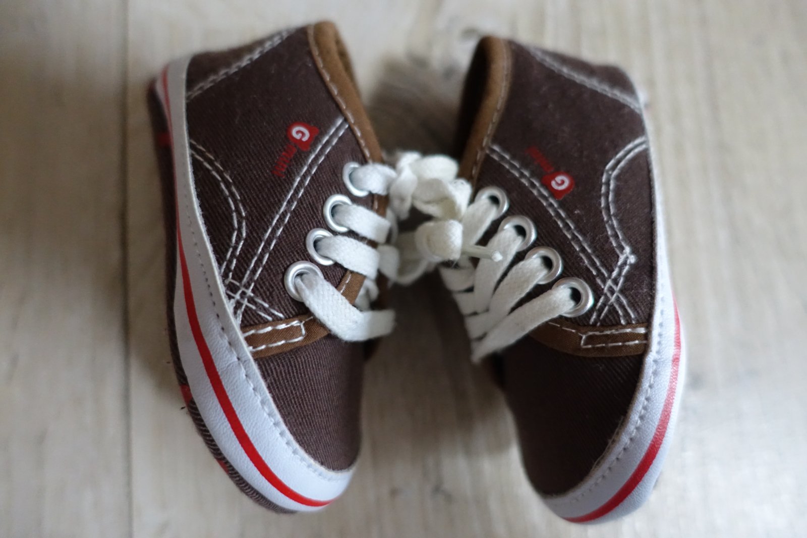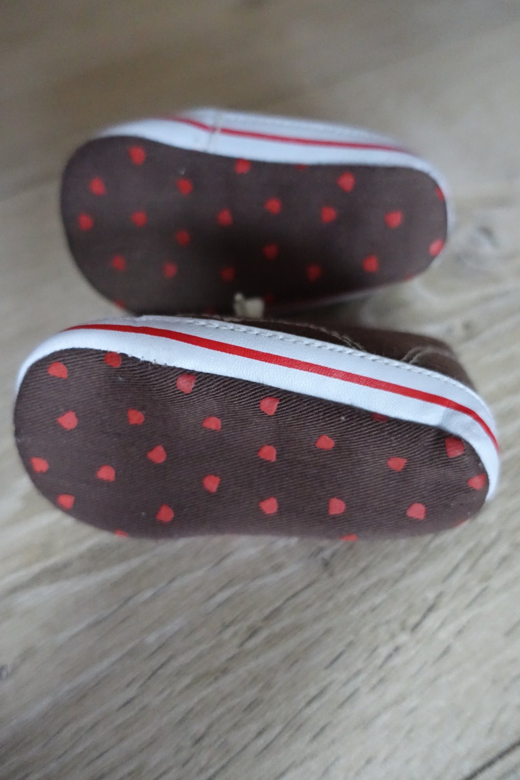 Predám krásne hnedo biele capačky značky Gmini. Boli len odskúšané, pozabudli sme na ne a už nám neboli dobré. Sú mäkké, pohodlné. Na spodku podrážky sú hlavičky medvedíkov, tie sú pogumované. Krásne. Vonkajšia dĺžka capačky je 11,5 cm.