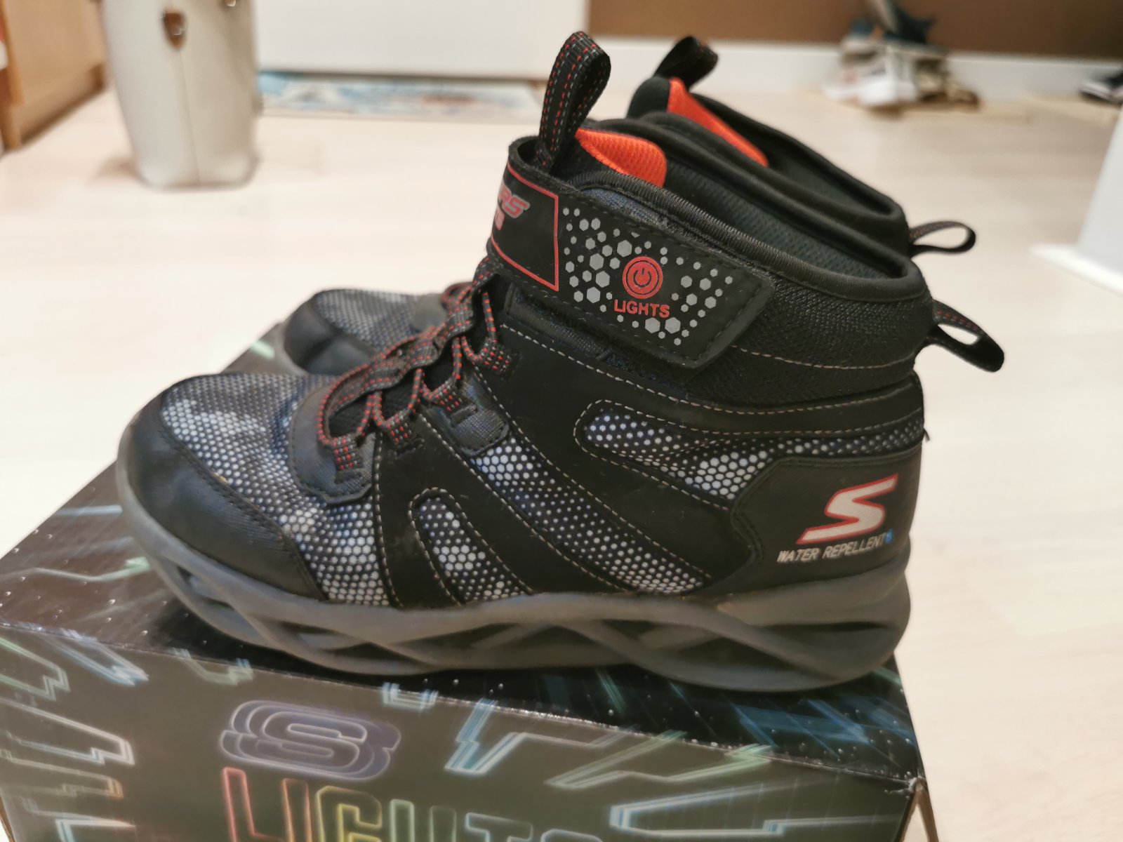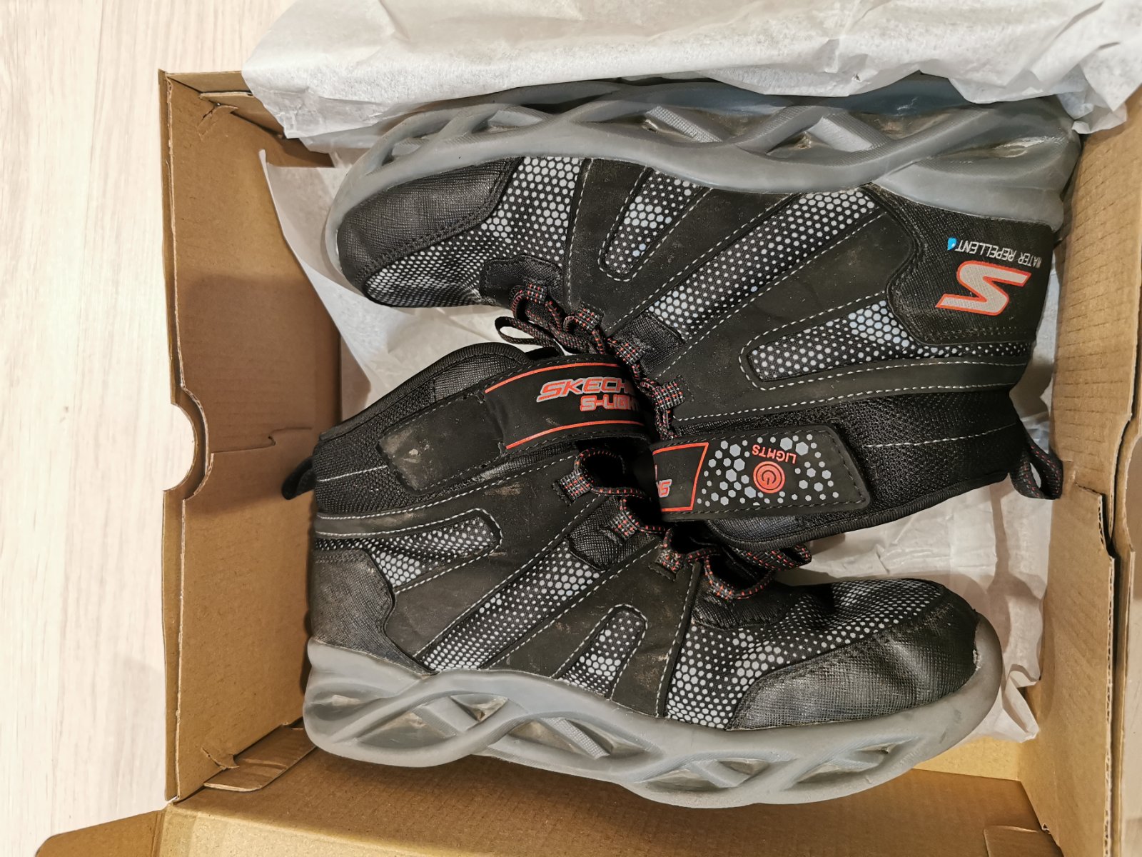Predam jednu zimu nosene čižmy Skechers, velkost 36,5 podla vyrobcu. Stale obidve pekne v tme blikaju. Nosene na stridacku s inymi, teda neznicene, vyborne sa obuvaju.