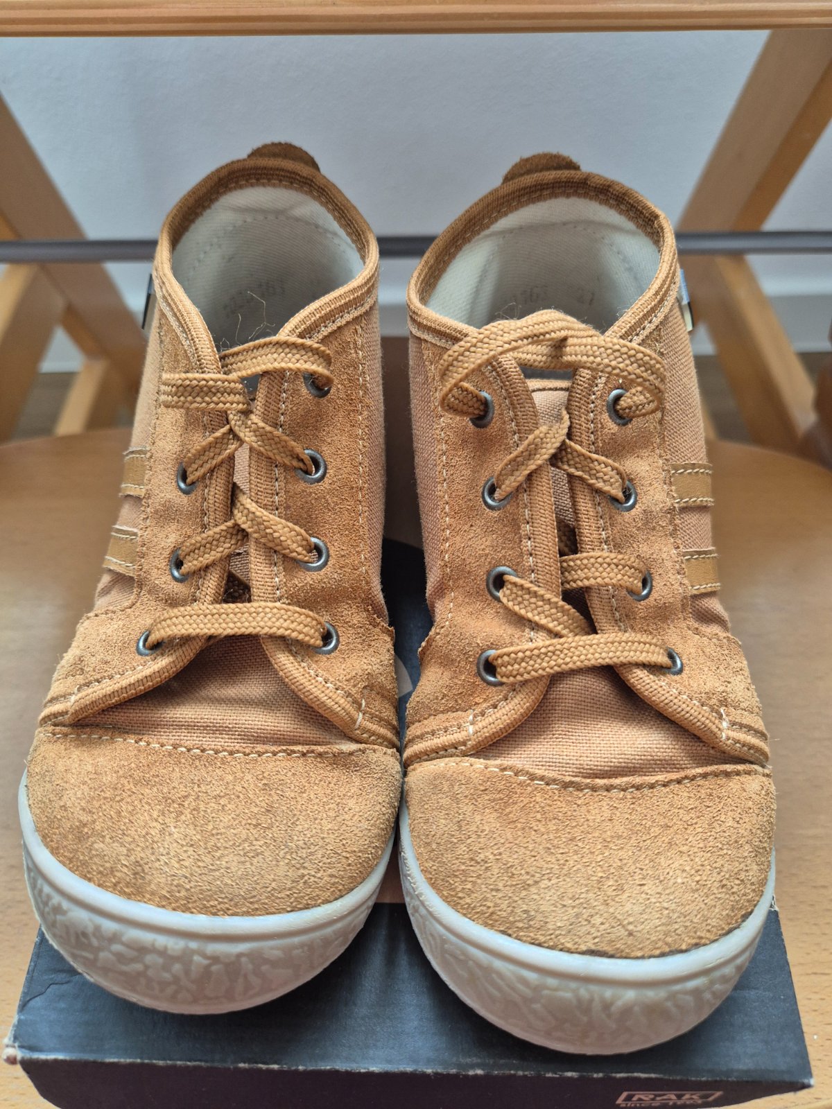 Detská obuv v štýle " tenisiek " na šnurovanie určená pre deti cca do 6 rokov. Detské tenisky sú ľahké, pružné vyrobené v kombinácii textilu "keper"zo 100% - nej bavlny a prírodnej kože. Tieto materiály zabezpečujú priedušnosť a dokonale sa prispôsobujú tvaru nohy. Členkový strih, výstuž päty a anatomicky tvarovaná vkladacia stielka zabezpečia dieťaťu pohodlnú a bezpečnú chôdzu a podporujú zdravý vývoj detskej nohy. Pri výrobe anatomickej vkladacej stielky z prírodnej podšívkovej kože je použité len disperzné (vodou riediteľné) lepidlo, teda lepidlo bez obsahu škodlivých organických rozpúšťadiel. Obuv ma certifikát o zdravotnej a hygienickej nezávadnosti. Okrem toho bola posudzované komisiou zloženou z ortopéda, detského lekára, modelára a špecialistov na výrobu obuvi. Detské tenisky sú určené predovšetkým na voľnočasové aktivity dieťaťa v exteriéri pri suchom počasí. Pri daždivom počasí je vhodné tenisky ošetriť vodeodolným sprayom na textil a brúsenú kožu.