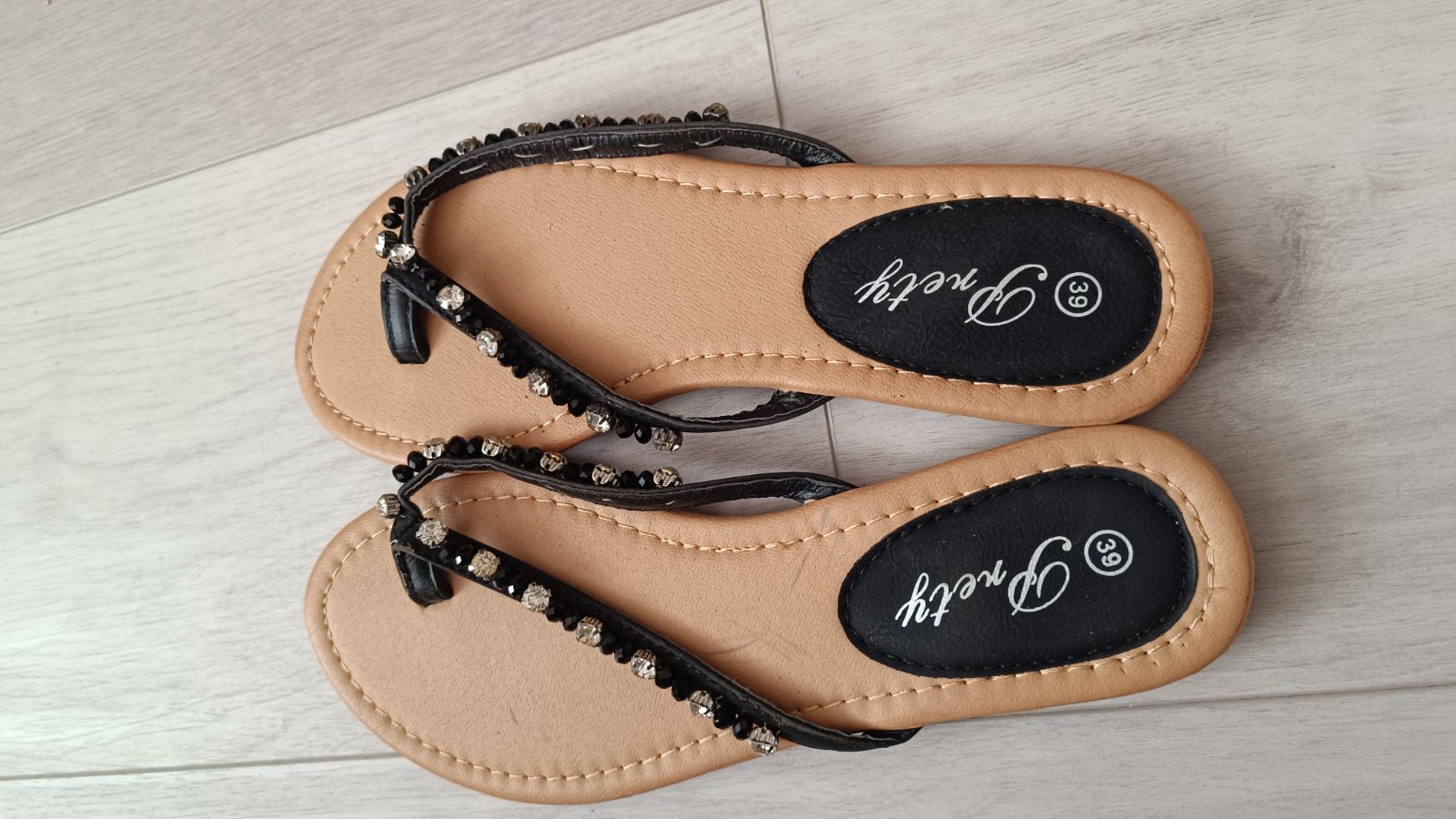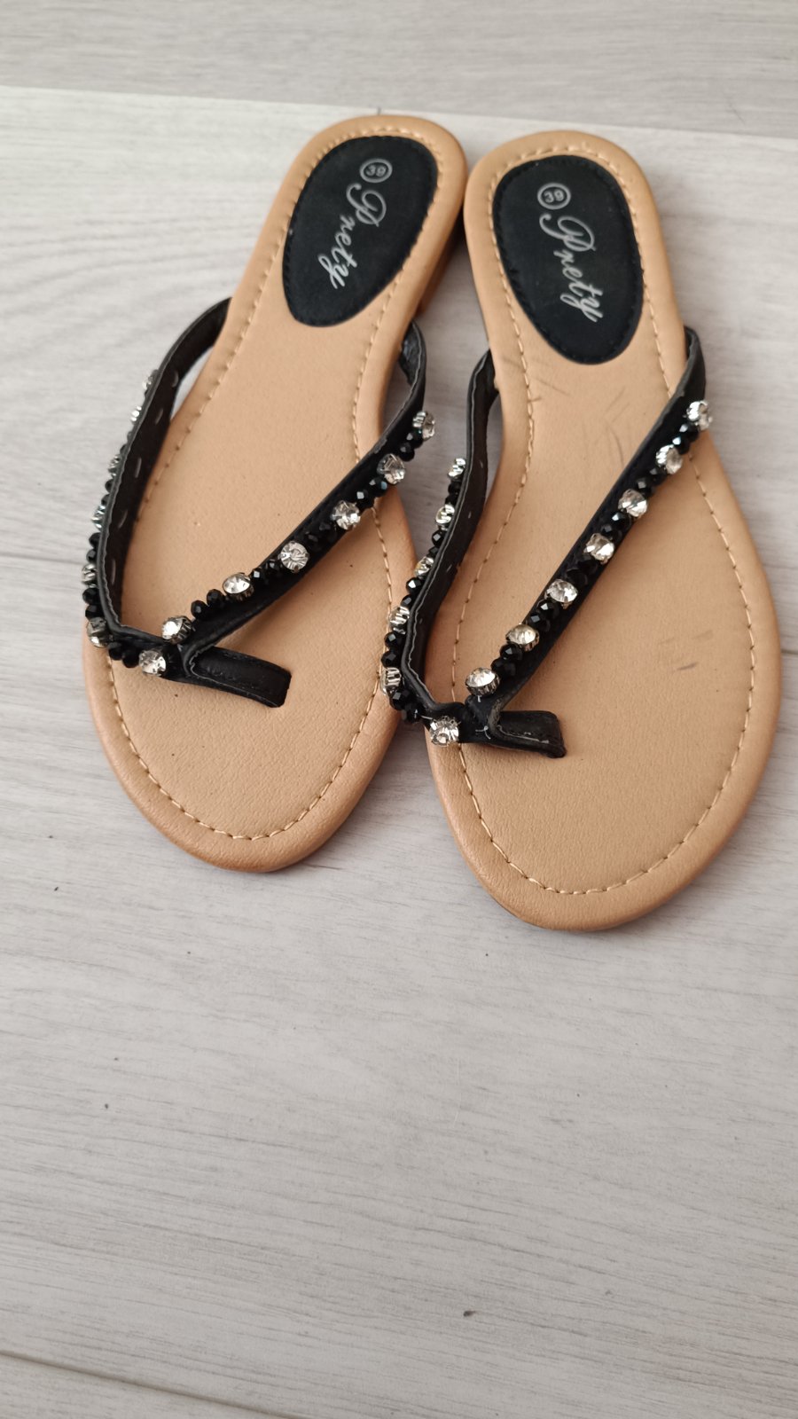 Predam velmi pekne slapky. Raz obute ako nove. Velkost je pisana 41. Ale sedia na 39. Vnutorna dlzka je 24,5cm