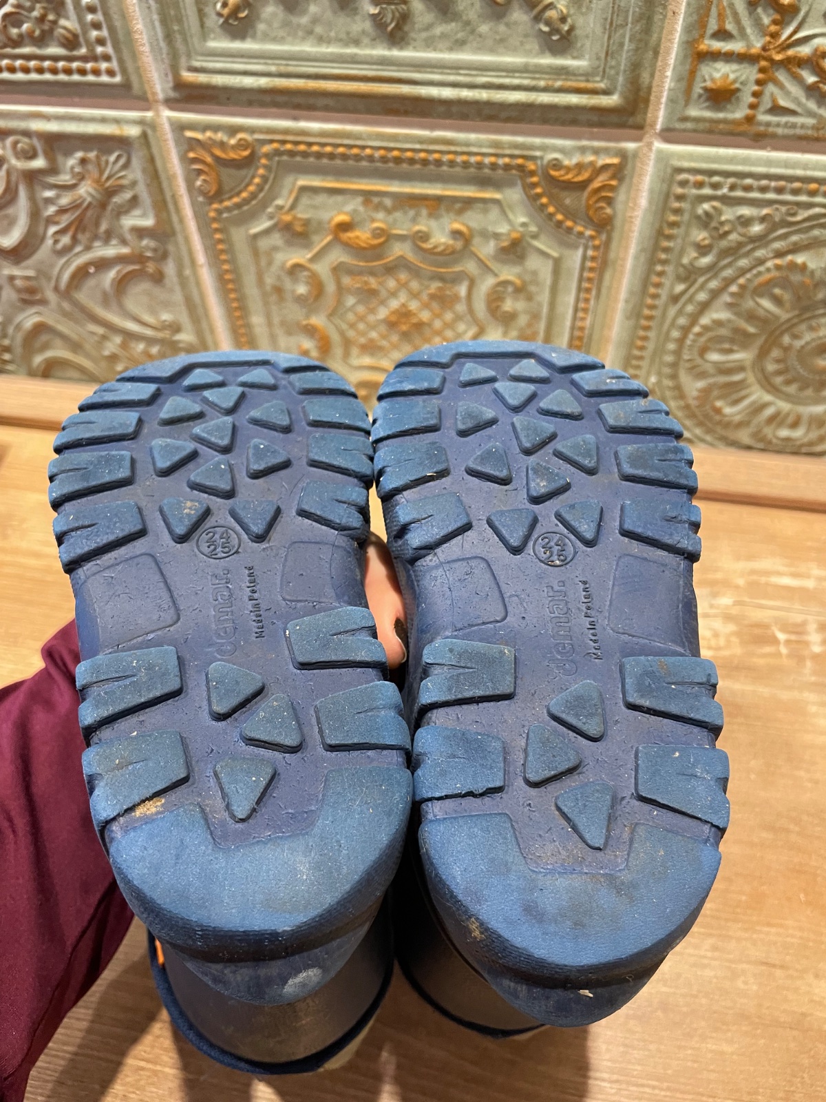 Demar gumáky nosené dvoma deti ale stale funkcne , vlozka uz je mierne vypouzivana ale posluzia este