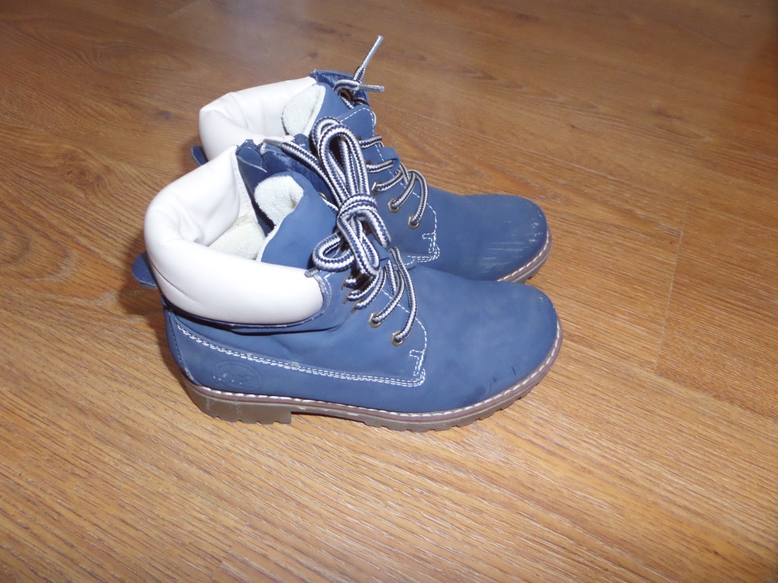 Čižmy nosené jednu sezónu mierne zateplené. Škrabanec na ľavej cižme vpredu nie je veĺmi vidno. Inak bez poškodení.