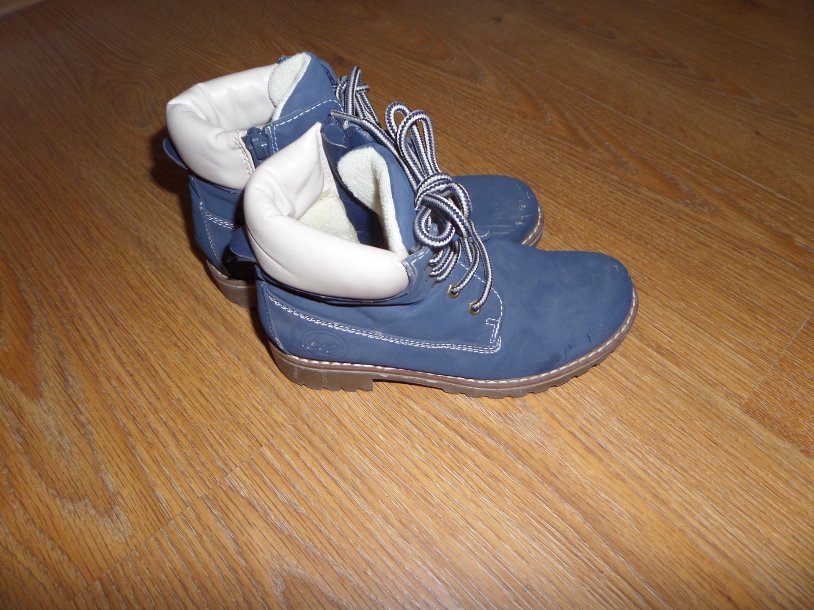 Čižmy zateplené fleesom. Vysoké na šnurovanie + zips na boku. Podpätok má 2,5 CM. Bez poškodení vo veľmi dobrom stave. Pc 39.99€. VN.dlzka 20cm
